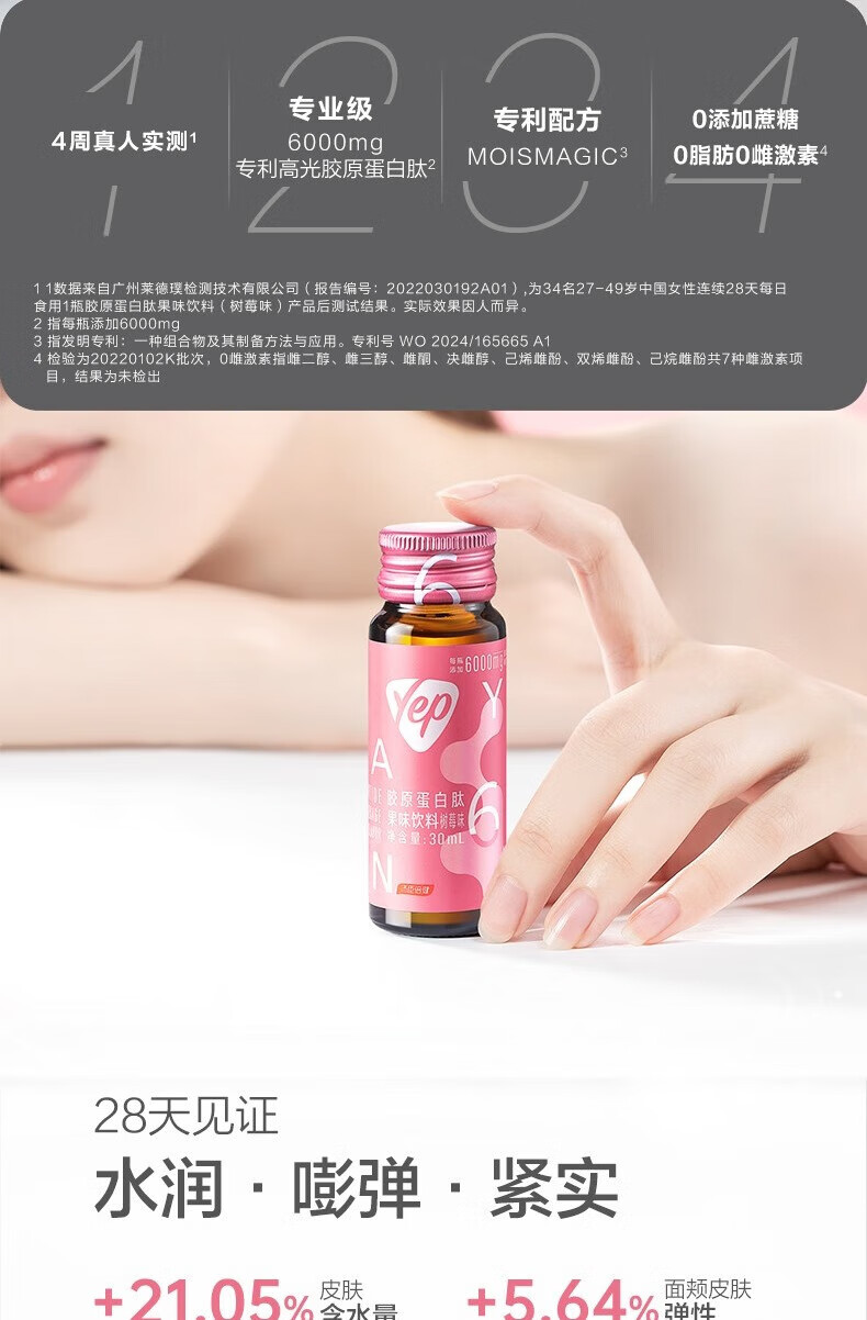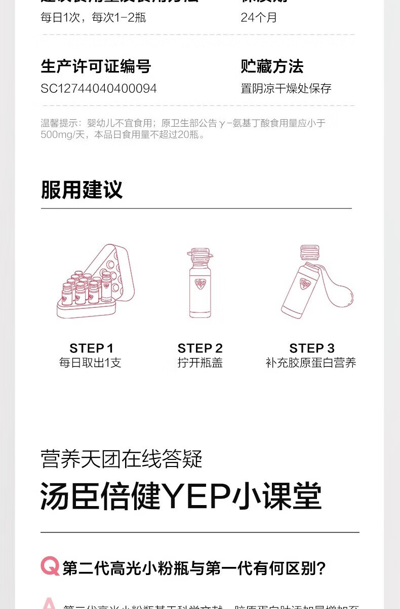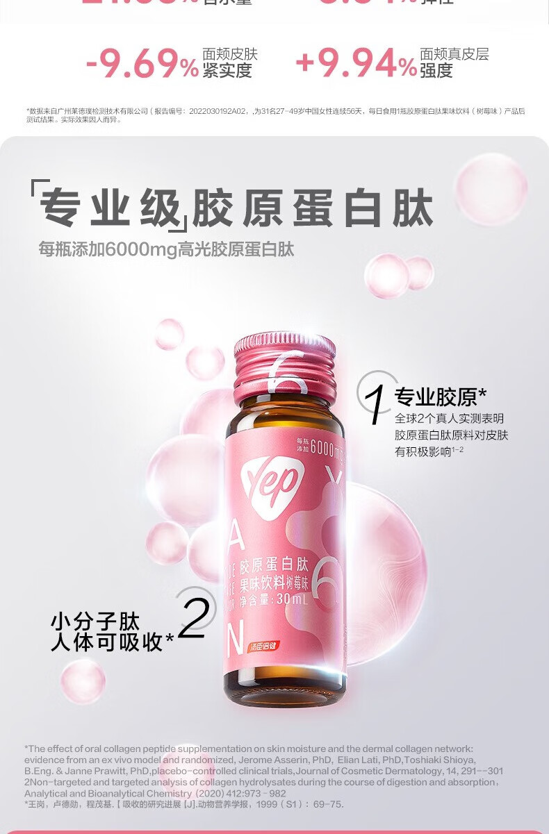 汤臣倍健Yep胶原蛋白肽果味饮料树莓味7瓶