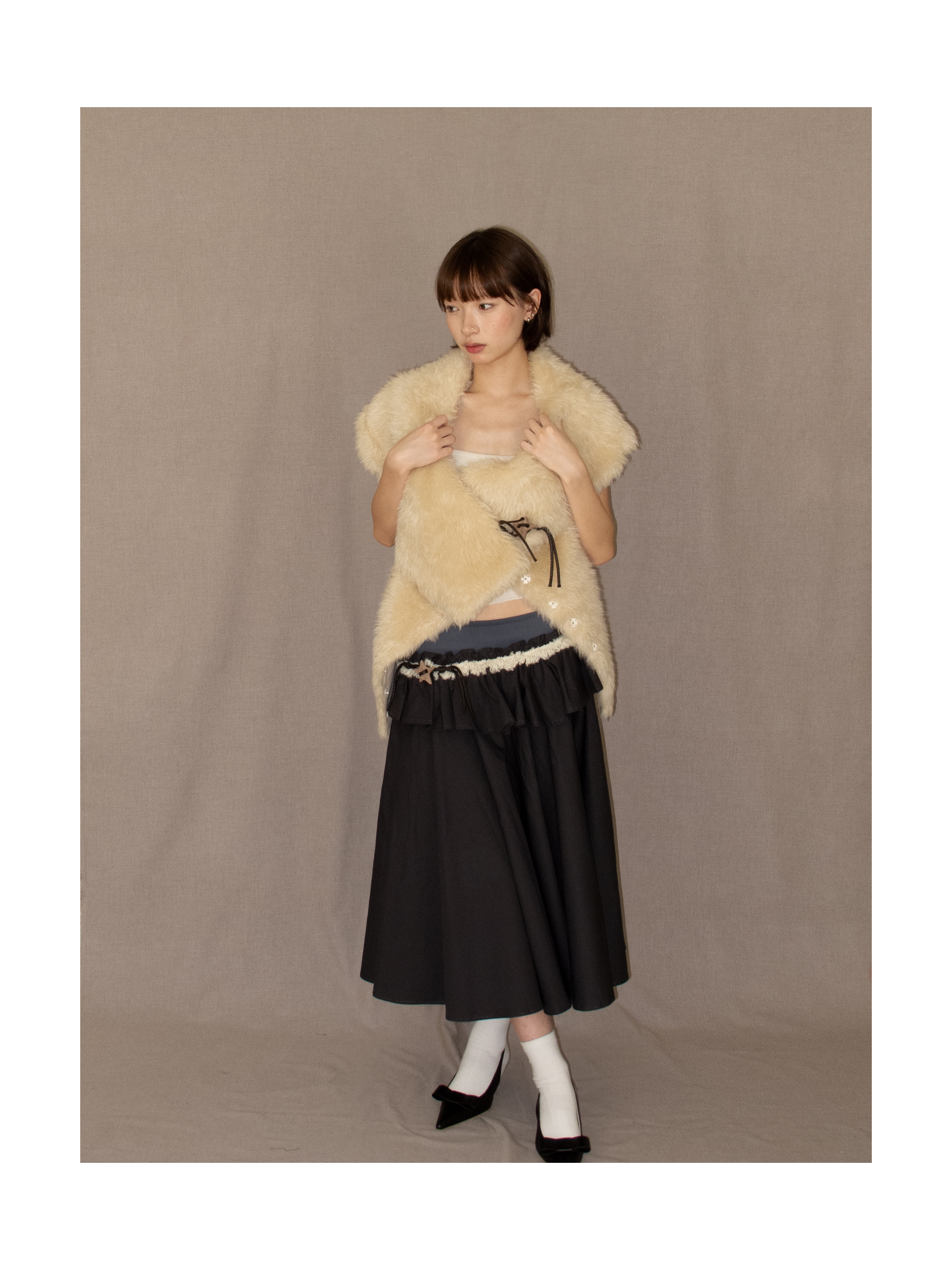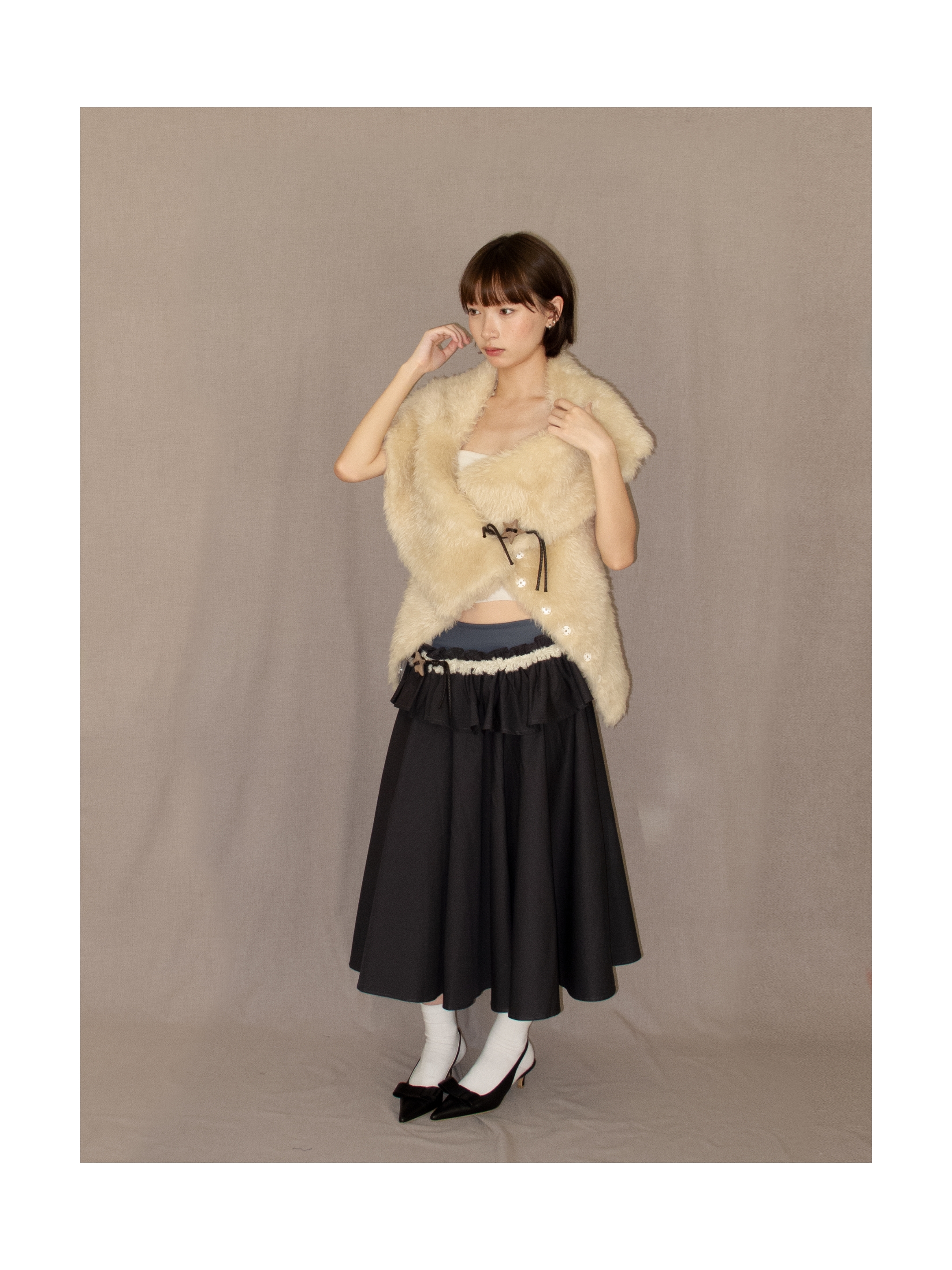 Kaiy Xiao 魔法星星系列 毛绒褶皱双层不规则长半裙