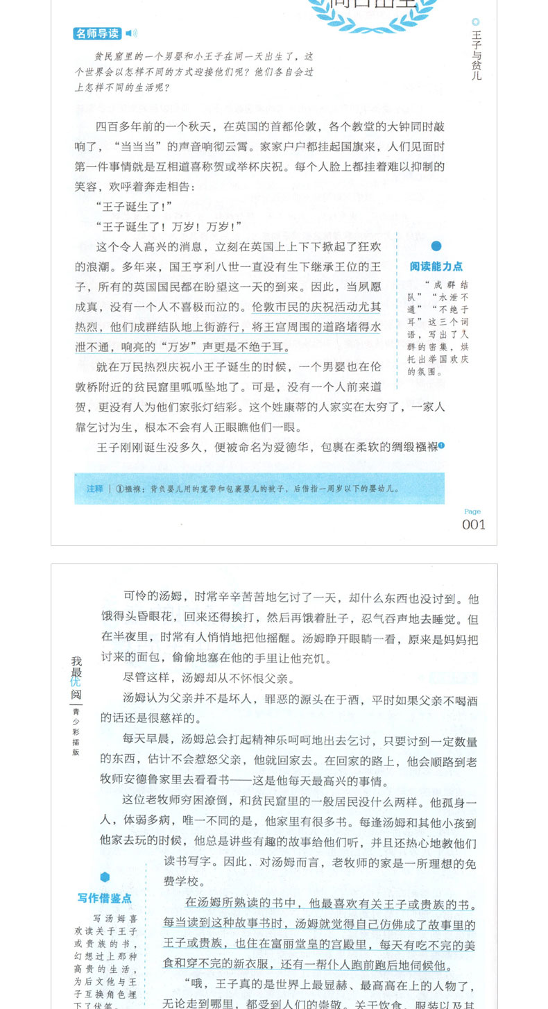 王子与贫儿 钟书正品正版书籍 我优阅青少彩插版无障碍课外阅读 小学生三年级四五六年级3456年级课外文学儿童故事读物图书籍