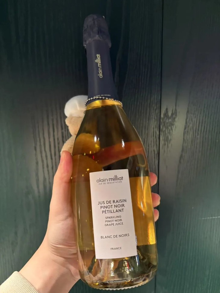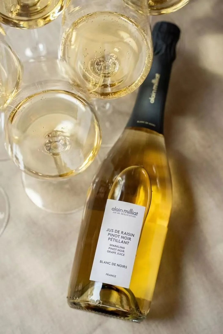 而为了制作出究极气泡葡萄汁,Cesar Triosgros使用了经典的750ml香槟瓶和香槟塞,非常的高级。淡珍珠般的颜色是这款气泡酒的典型颜色,具有柑橘类水果和白花的香气,小红色浆果的浓郁香气,以及浓郁的葡萄酒般的口感结构。整体给人的印象是清新、果香浓郁,但余味非常丰富,在即将到来的春天极其的适合!不含酒精、不额外摄入糖粉、不含防腐剂,妥妥的高级又健康!对于不胜酒力,或是酒精过敏的朋友实在是太友好了!不论是早午餐、下午茶还是晚餐来这么逼格满满又美味的气泡葡萄汁实在是太美好了!而且为了保留果汁的最佳口感,并且能够在无防腐剂的情况下保存3年,Alain Milliat在只进行一次巴氏杀菌后,在全无菌的环境下充入二氧化碳瓶装,这才打造出这瓶无防腐剂纯天然健康清爽无敌的气泡葡萄汁!请务必冰镇到6度左右再饮用,因为不含防腐剂,请务必在开瓶后24小时内饮用,为了展现出这款气泡葡萄汁最佳的风味,建议使用白葡萄酒杯品鉴。