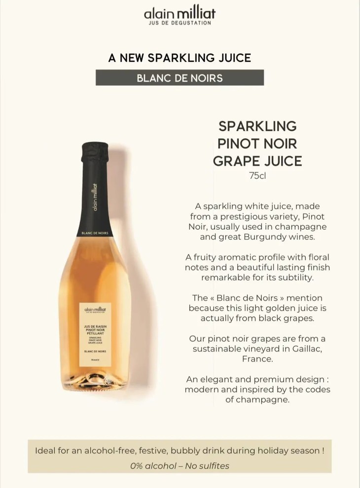 相信大家对之前我们新先聚品给大家介绍过的法国厨神保罗·博古思(Paul Bocuse)与连续48年米其林三星的传奇大厨Cesar Triosgros联手打造的世界最强葡萄汁Alain Milliat不陌生了(原文参考:果汁届的爱马仕!米其林三星大厨打造 好喝的不得了!)这次,除了经典款全线回归外,我们还为大家带来了超限量的Alain Milliat全新王炸产品,用100%勃艮第金丘的黑皮诺制作的无酒精起泡葡萄汁,堪比无酒精的高级黑中白香槟-酒精不耐的姐妹们有福啦!