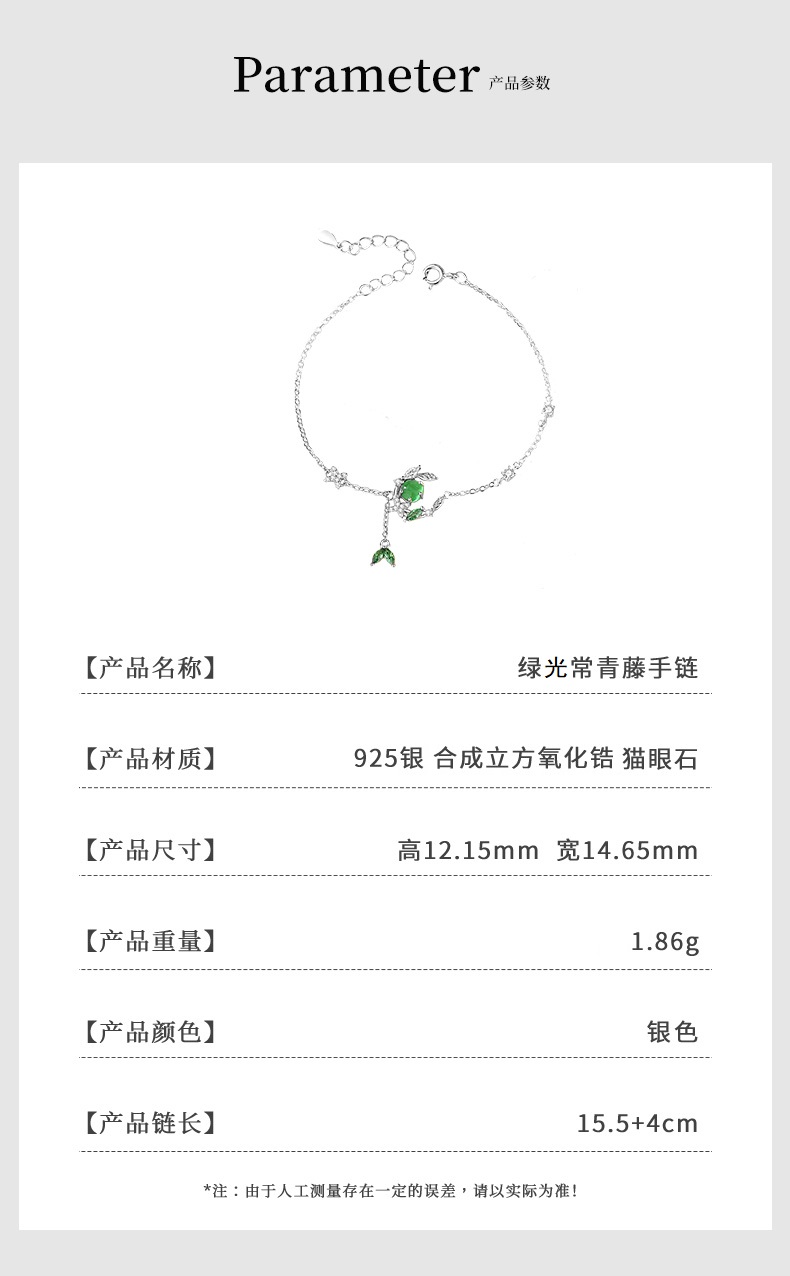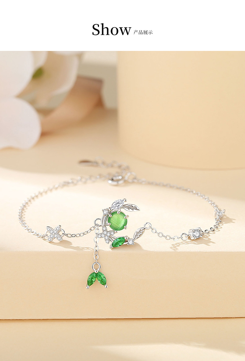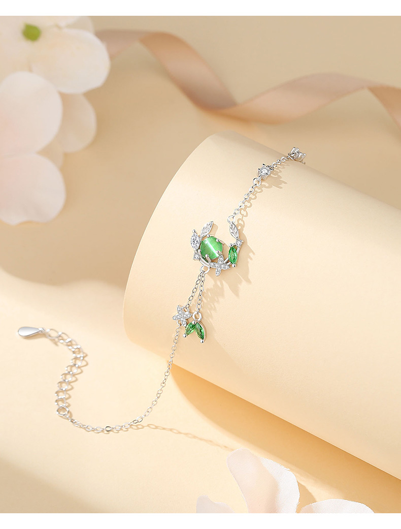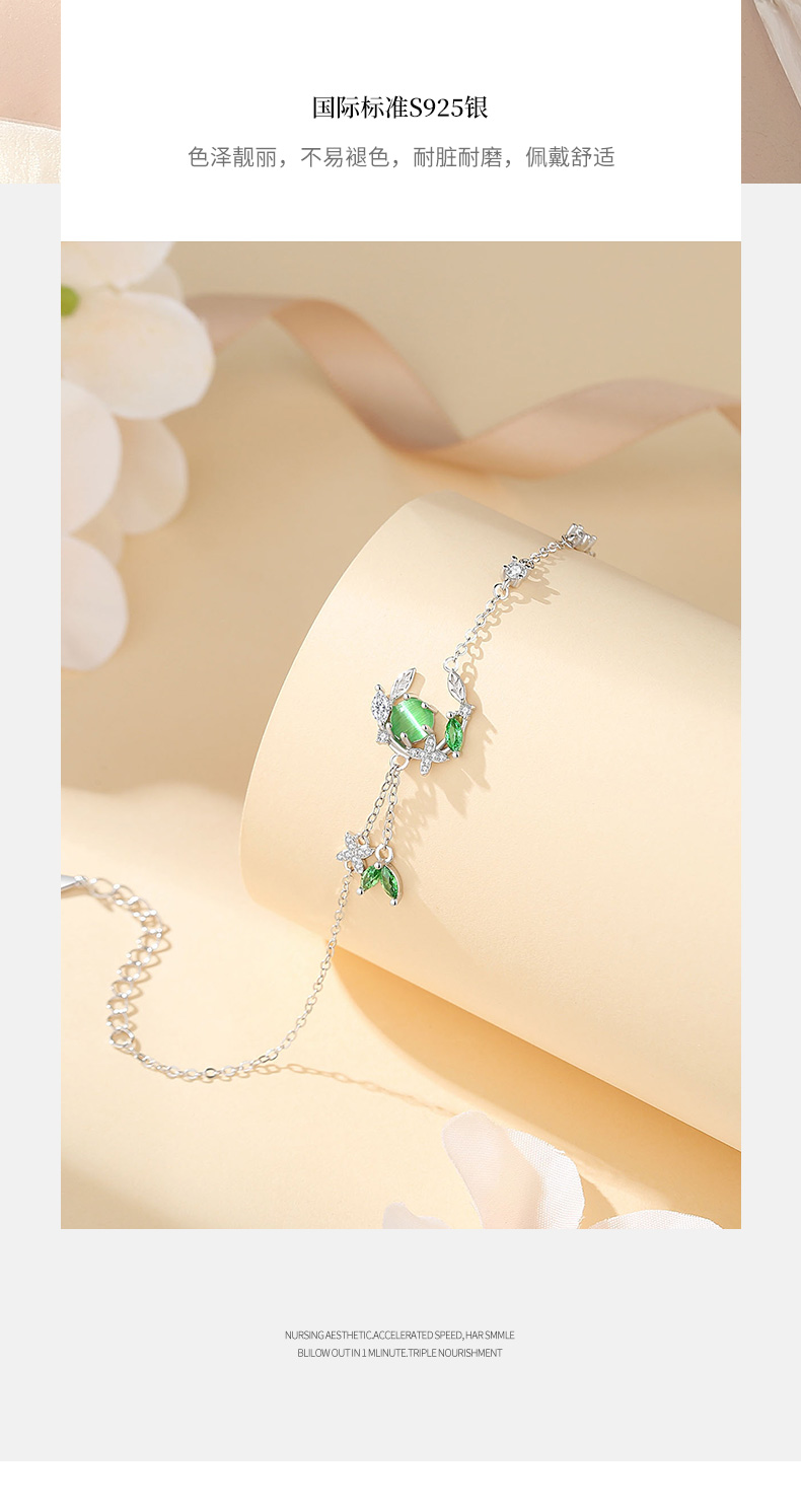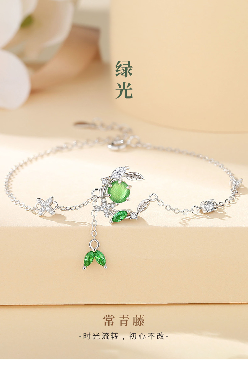 卡蒂罗/KADER 在逃公主系列 绿光常青藤手链 925银猫眼石月亮枝叶造型璀璨闪耀耳饰 森系清新吸睛配饰 女友礼品