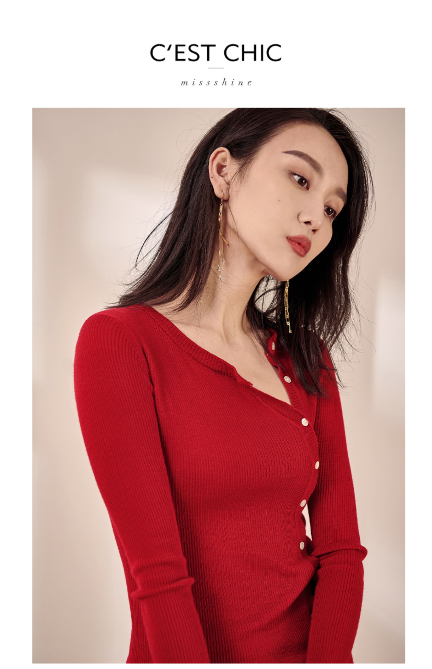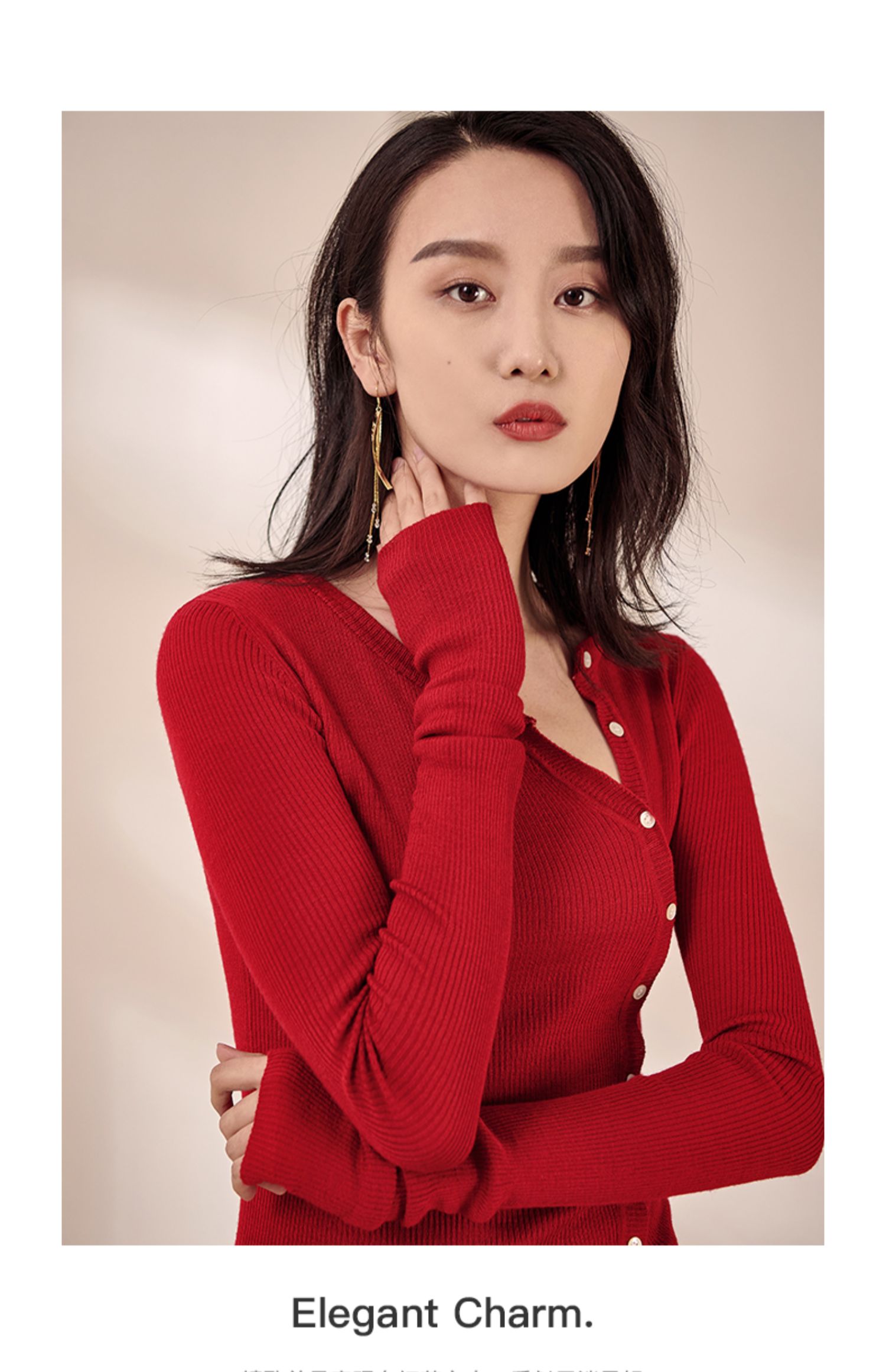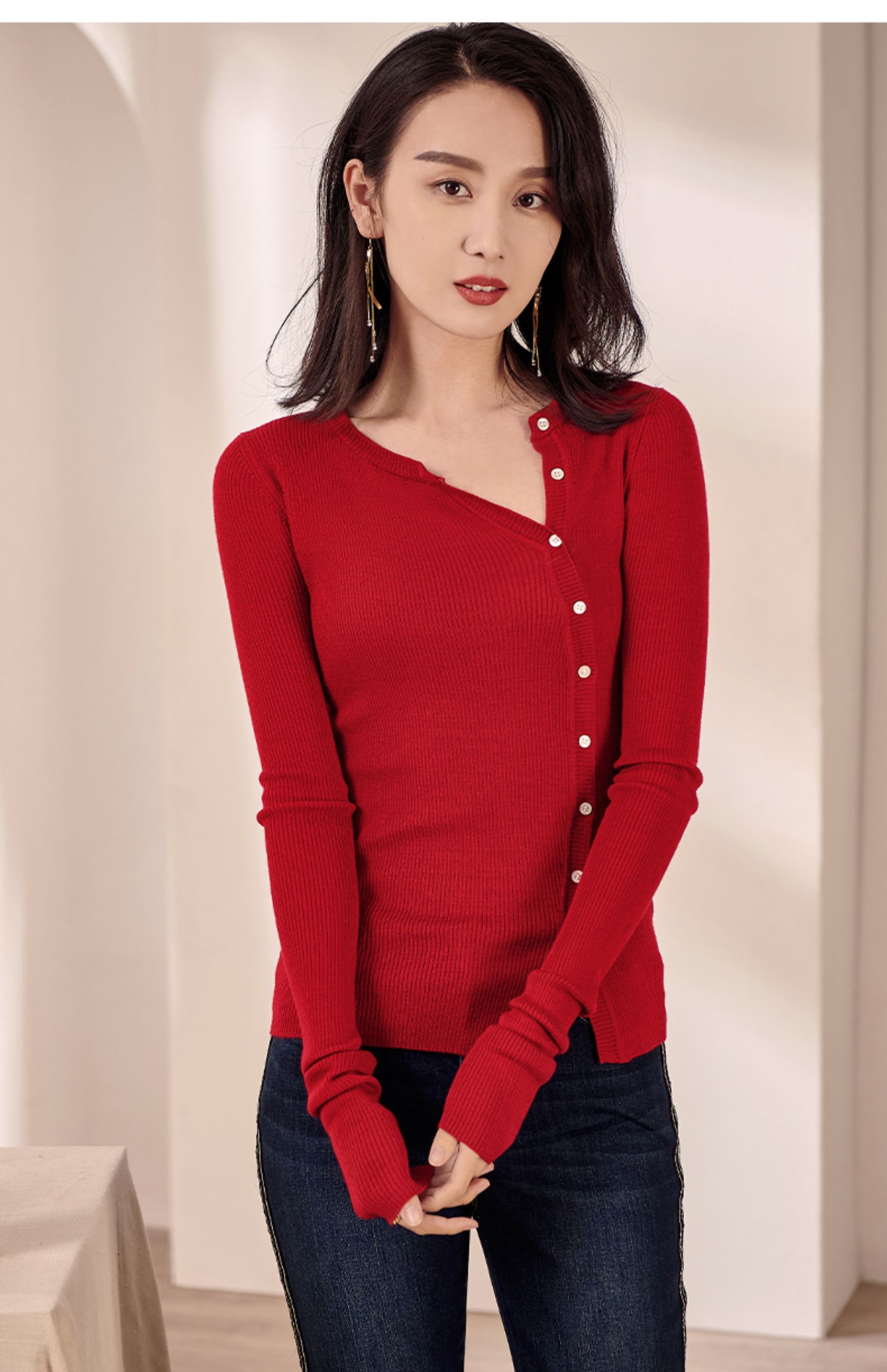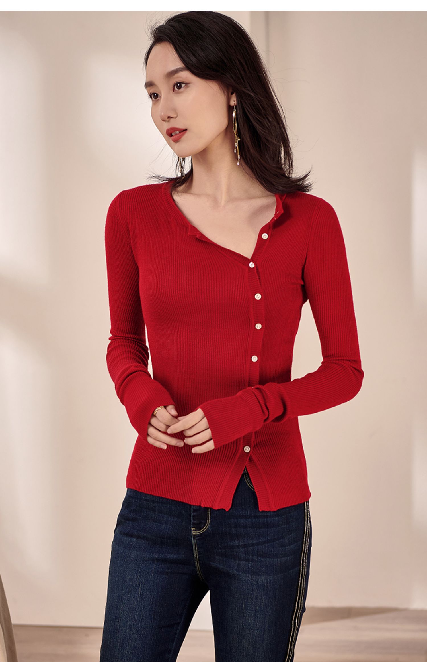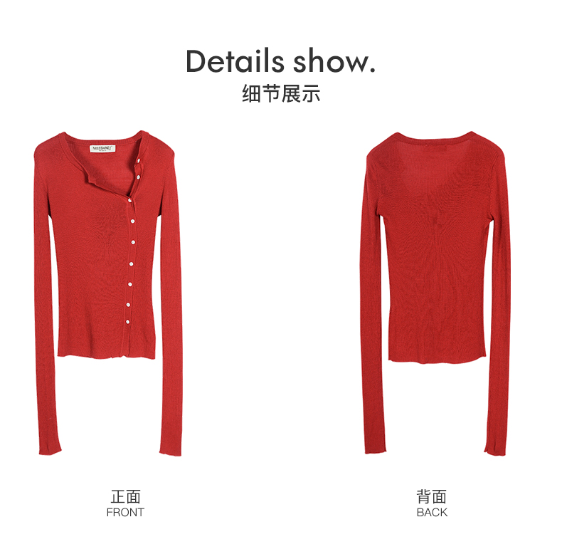 米思阳2026春装新款羊毛针织开衫长袖红色洋气修身显瘦内搭女0497
