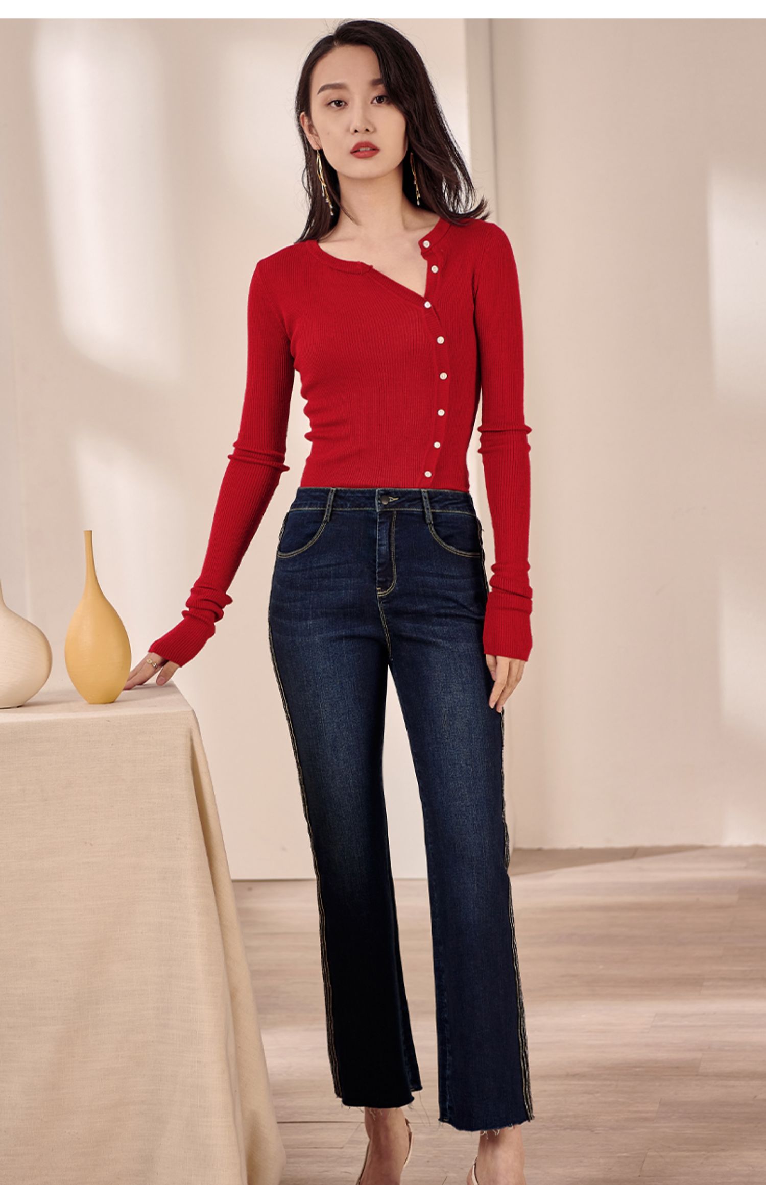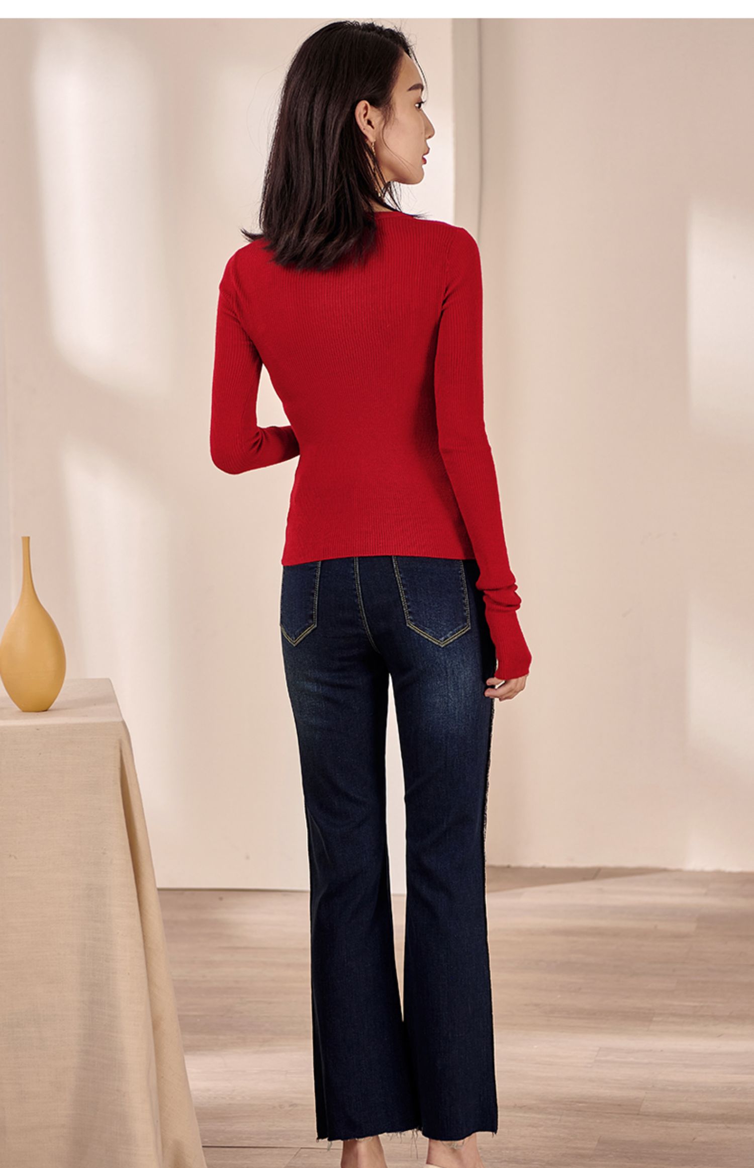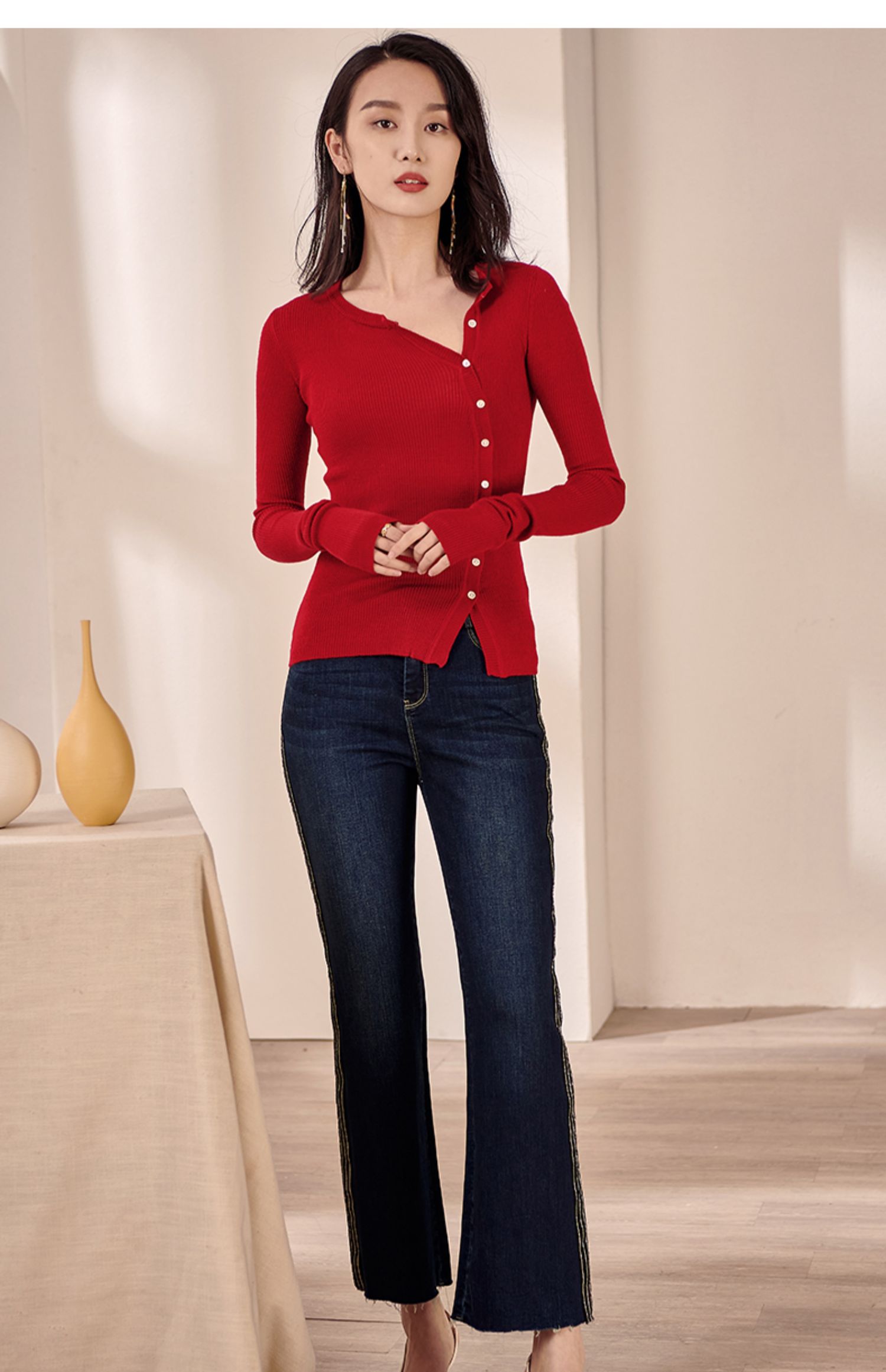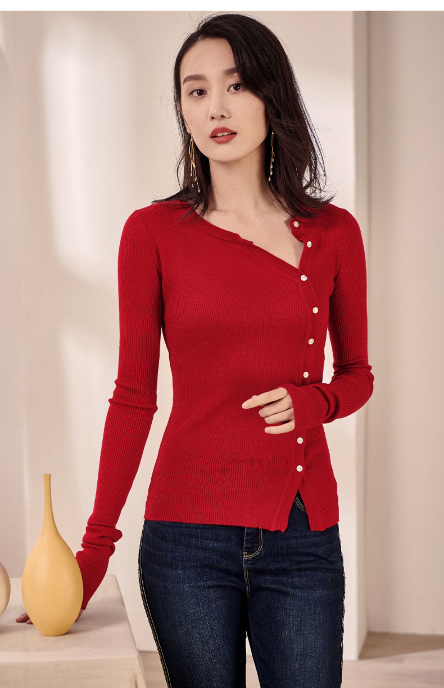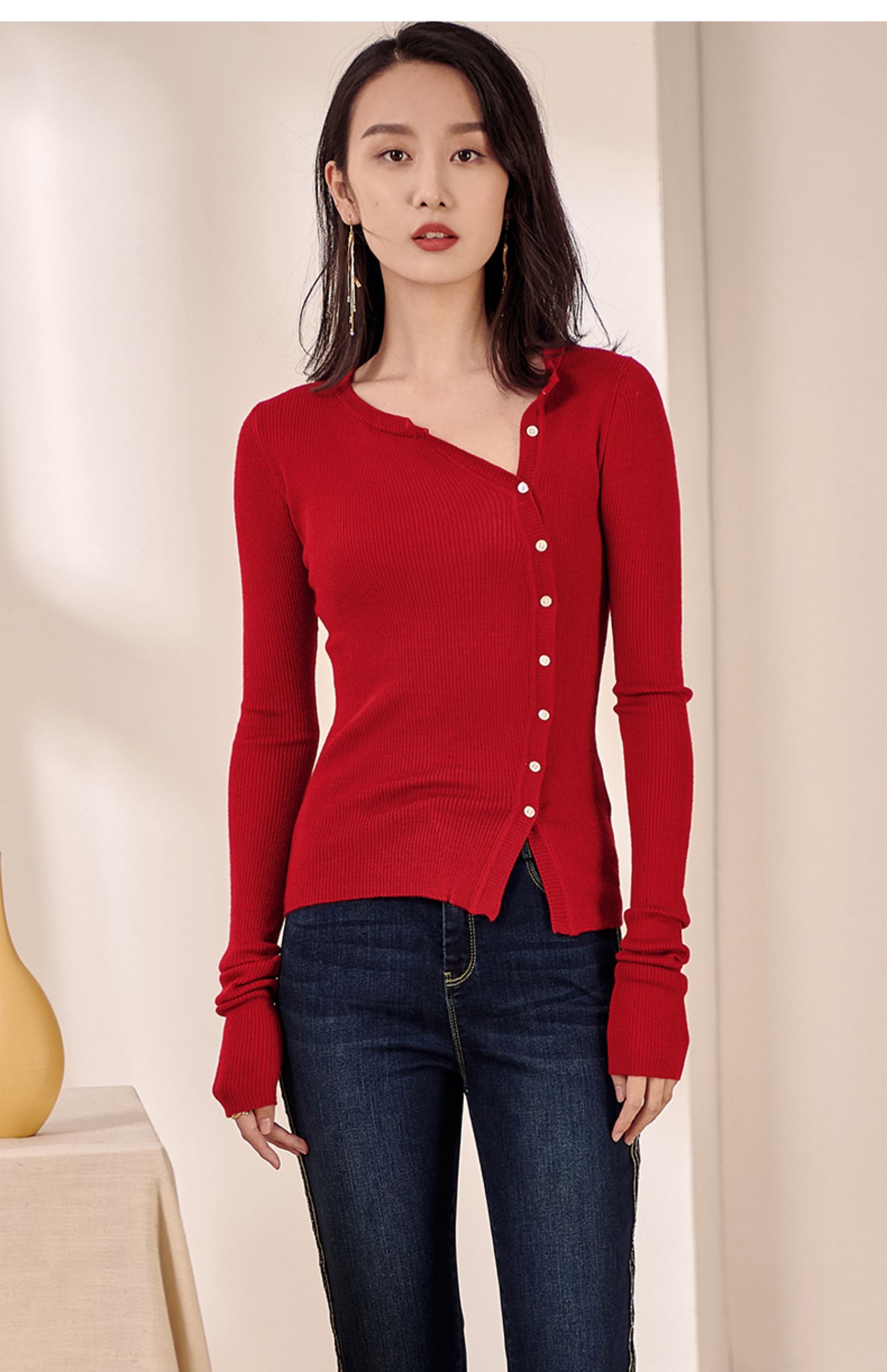 米思阳2026春装新款羊毛针织开衫长袖红色洋气修身显瘦内搭女0497