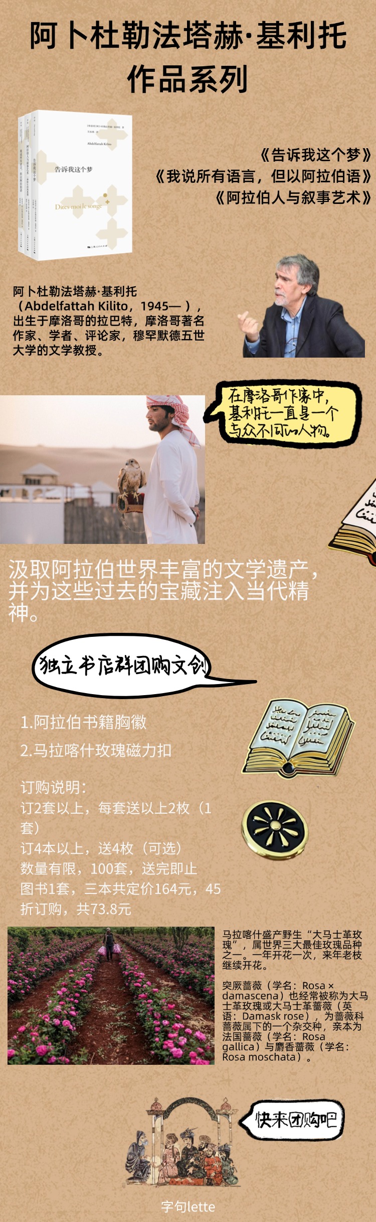 (独立书店购买链接)阿卜杜勒法塔赫·基利托作品系列《告诉我这个梦》《我说所有语言,但以阿拉伯语》《阿拉伯人与叙事艺术》