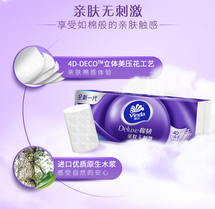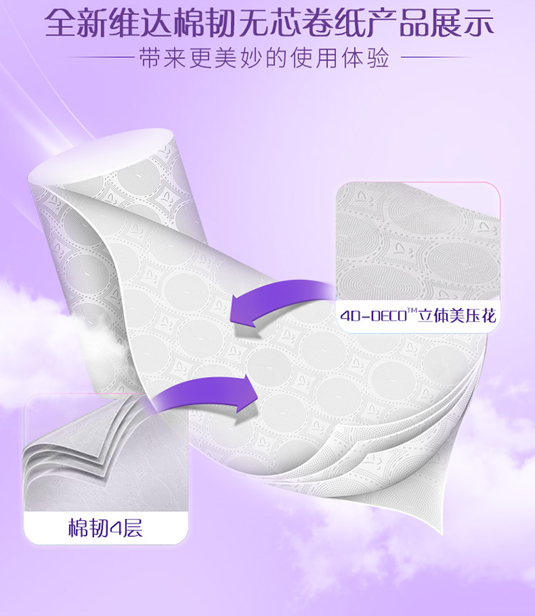 维达(Vinda) 无芯卷纸 棉韧立体美30卷4层 卫生纸 纸巾(整箱销售)母婴可用 亲肤无刺激 呵护肌肤