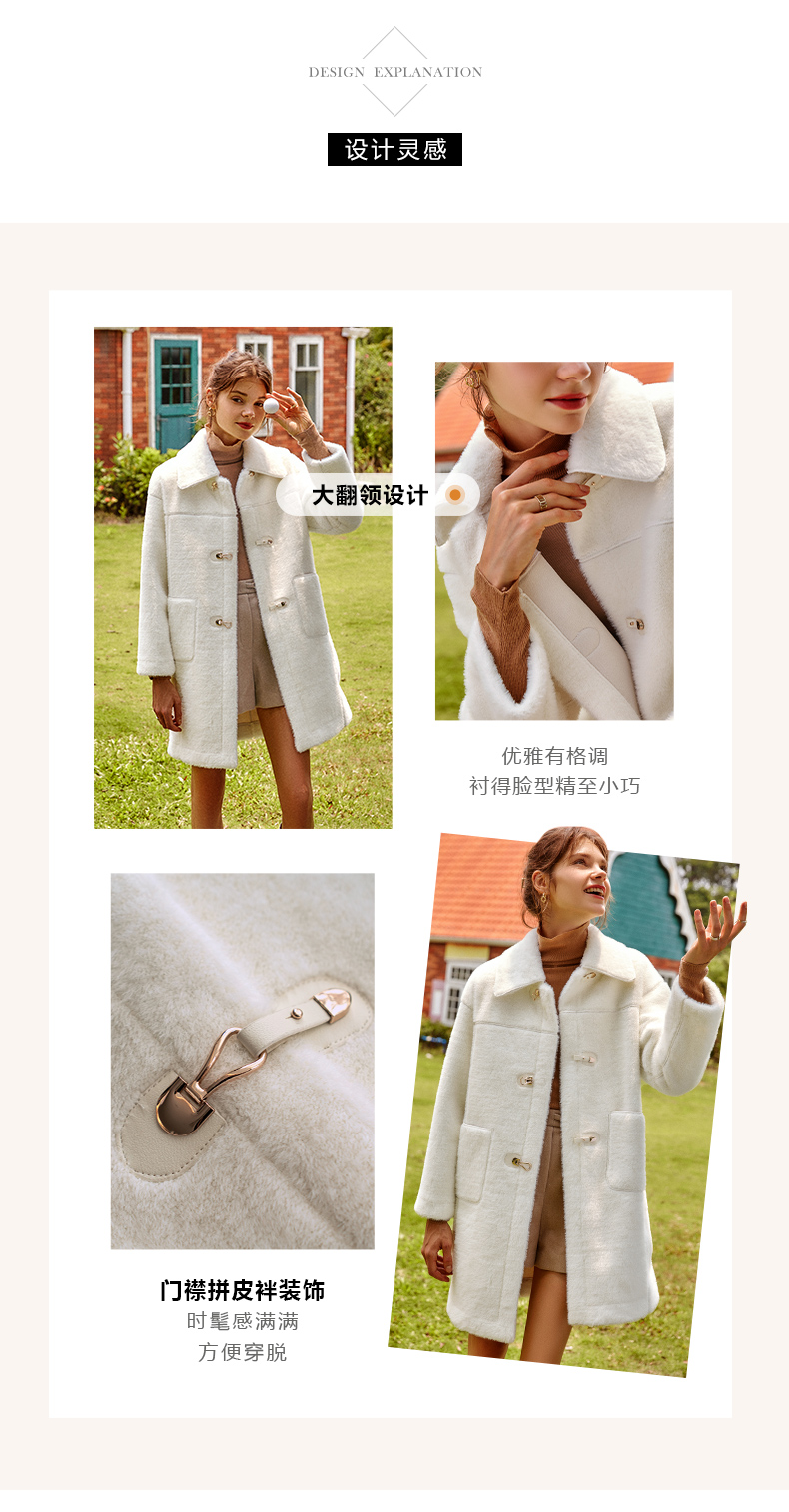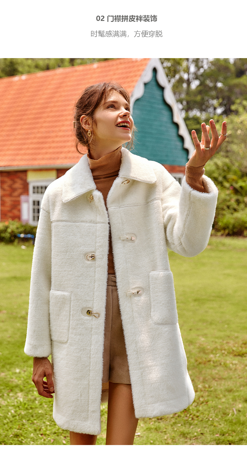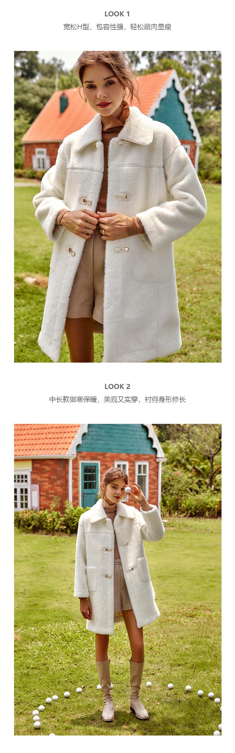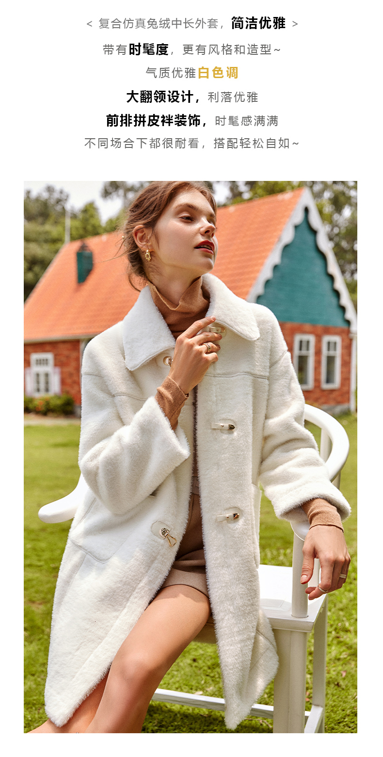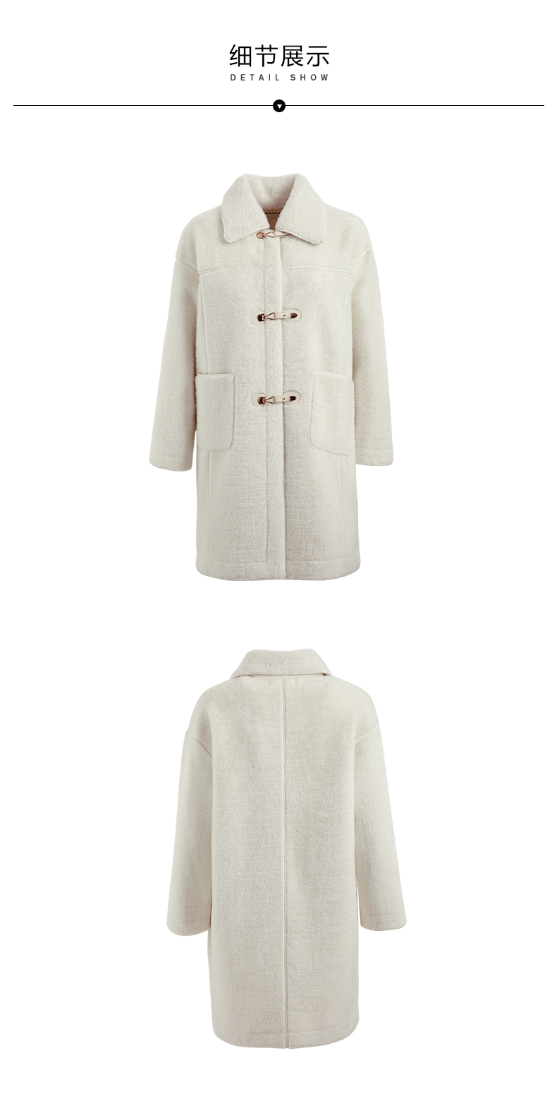 欧芮儿貉子毛领毛呢外套女中长款呢子大衣