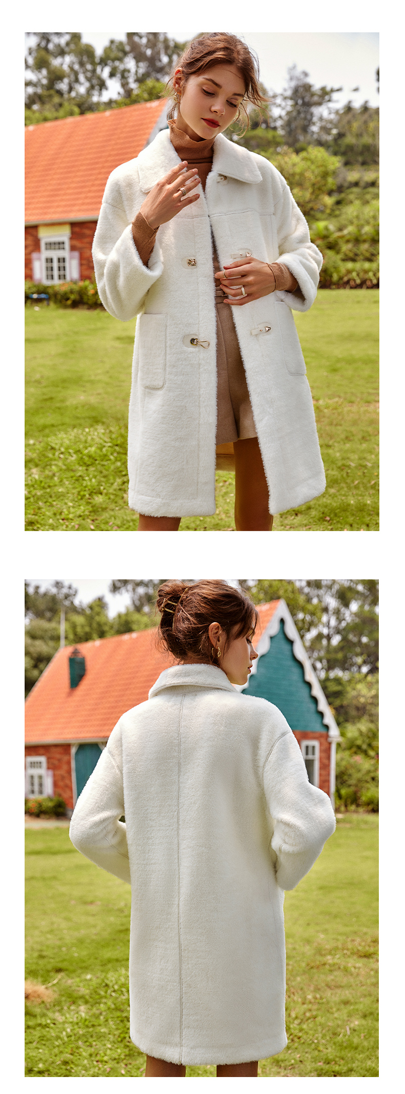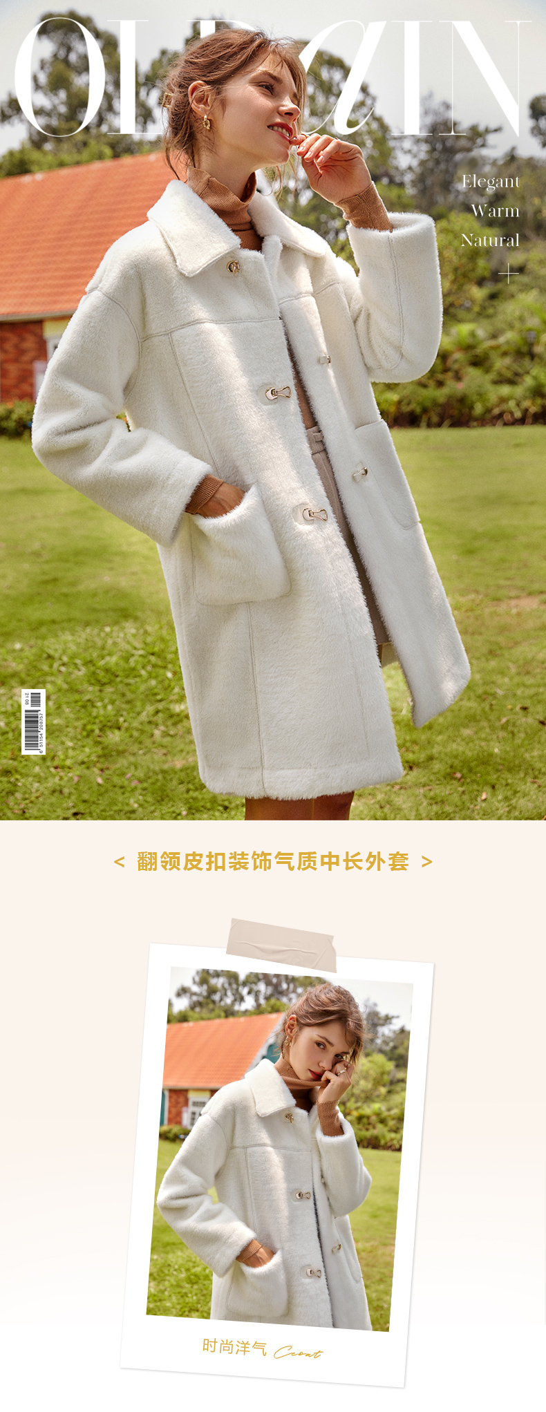 欧芮儿白色外套女春新款2025宽松显瘦时尚洋气休闲中长拼接大衣