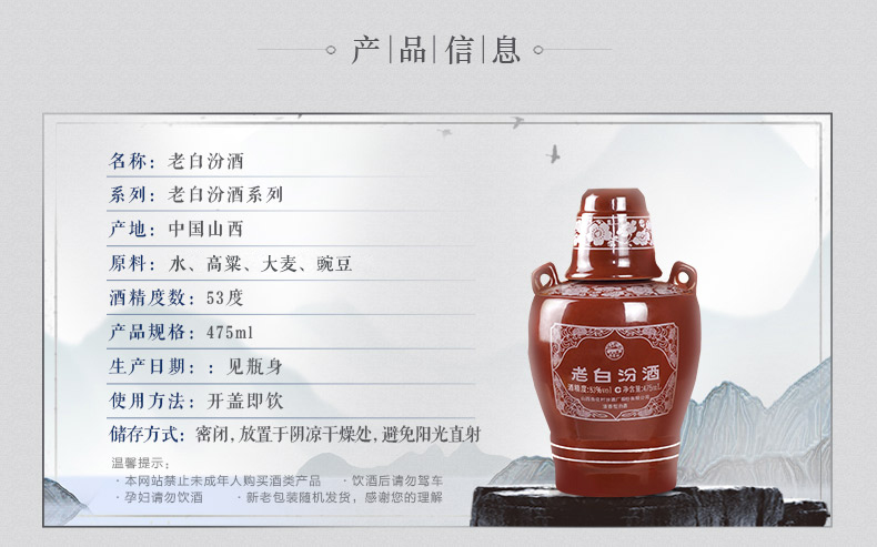 汾酒 老白汾10 清香型白酒 53度 475ml 单瓶装