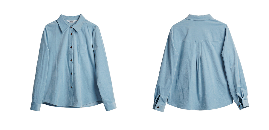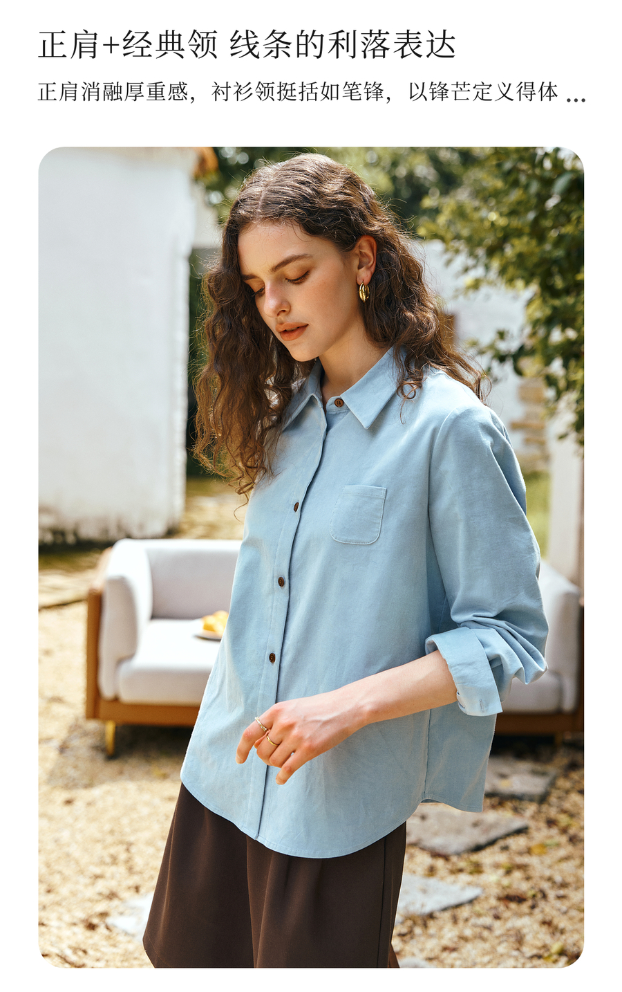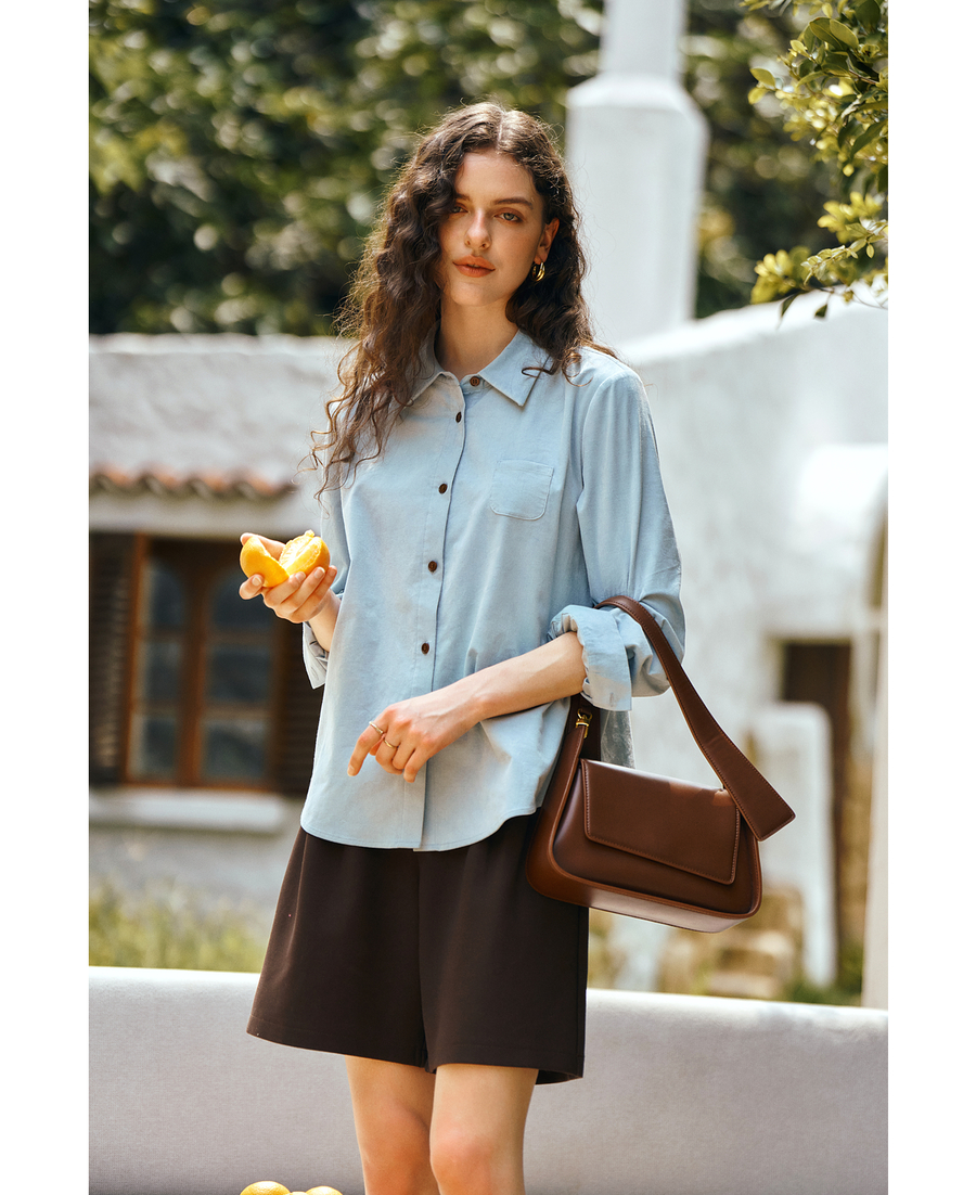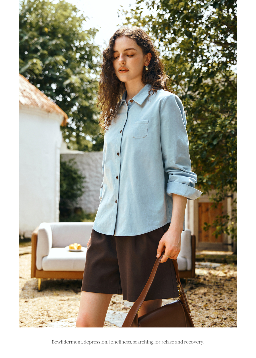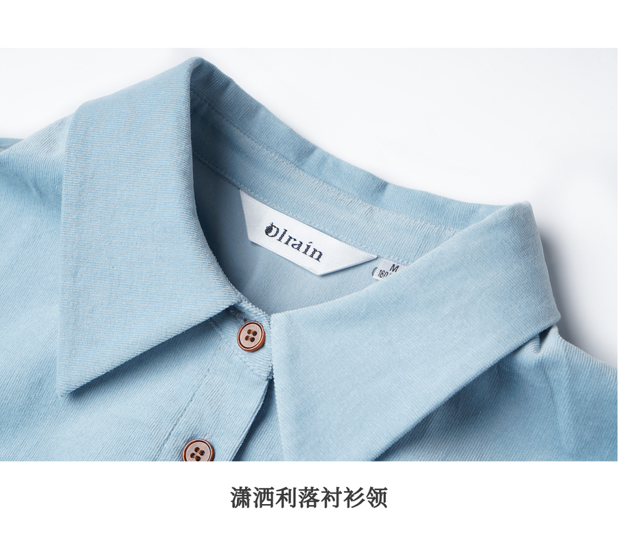 OLrain欧芮儿2025新款女秋季灯芯绒蓝色通勤衬衫气质百搭长袖衬衣