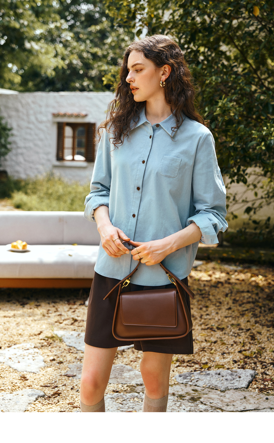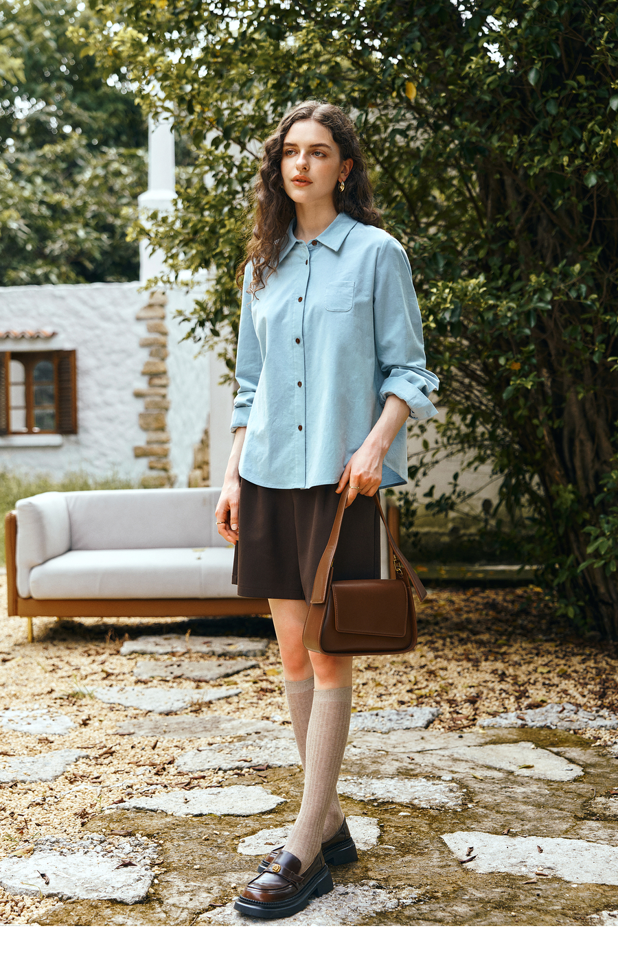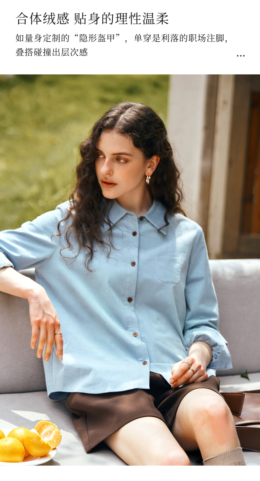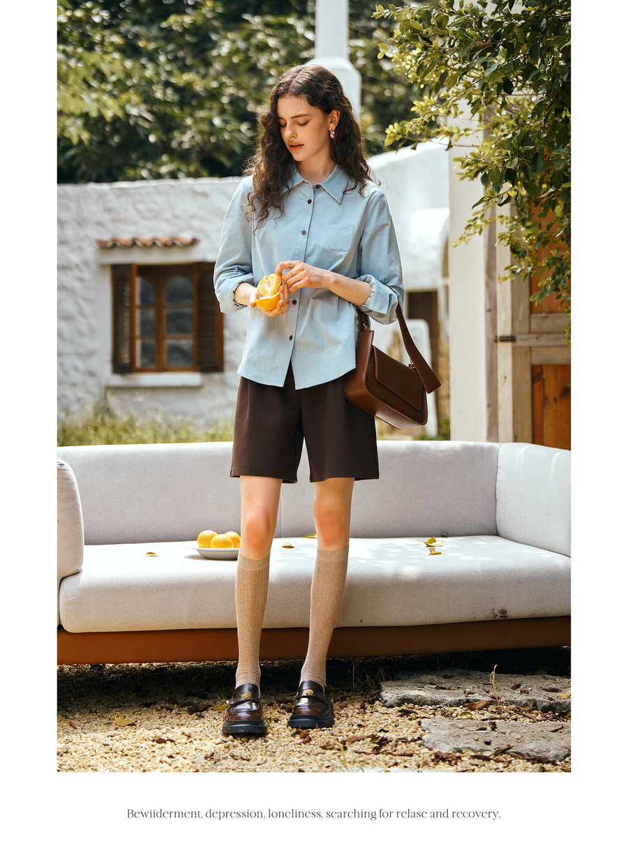 OLrain欧芮儿2025新款女秋季灯芯绒蓝色通勤衬衫气质百搭长袖衬衣