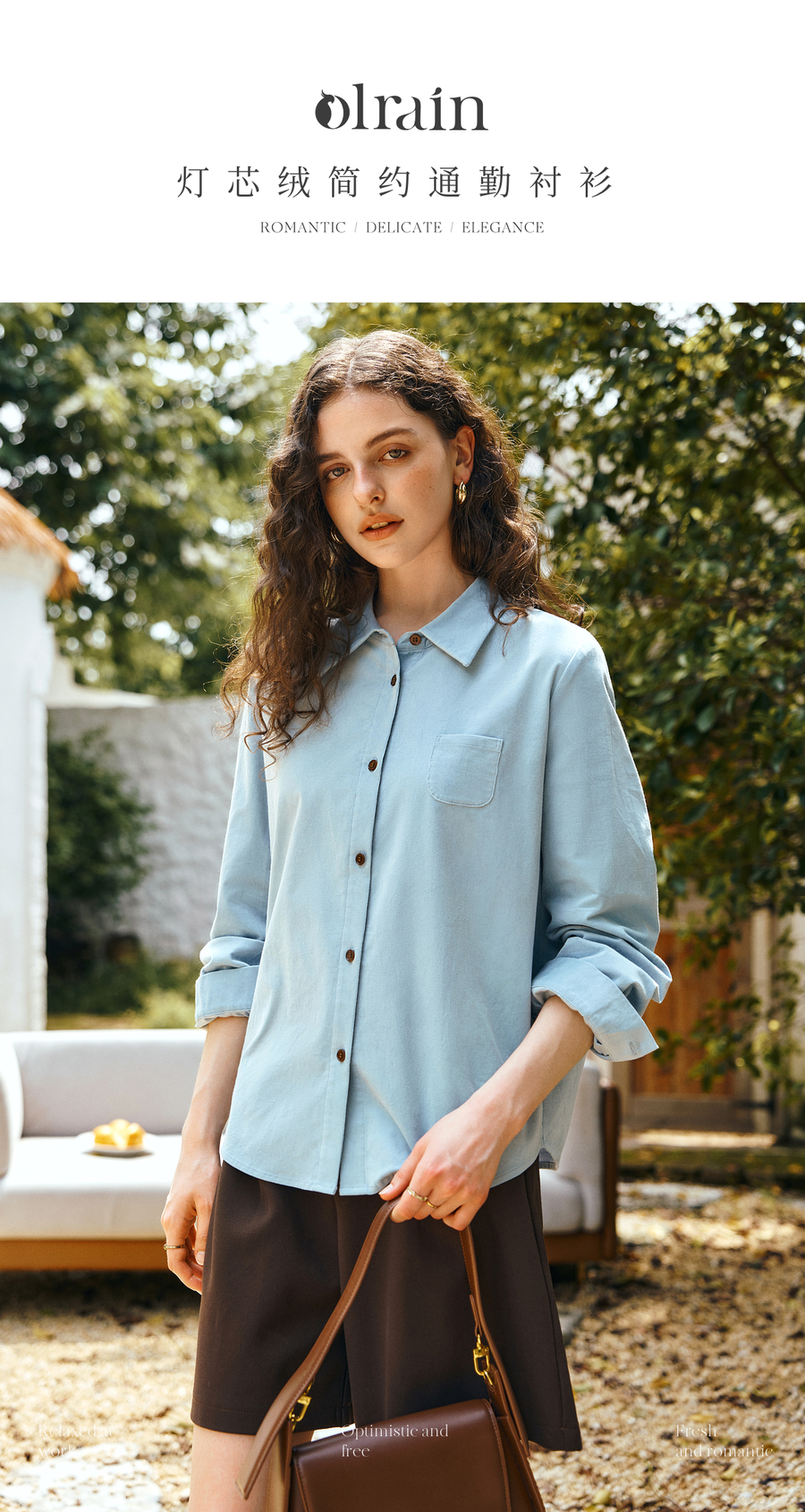 - “精致”是欧芮儿olrain品牌文化的核心,欧芮儿认为,精致的女人,不但要外在动人,更要内在迷人,内外兼修,有魅力、有气质、有内涵,自信而不自傲,优雅而不矫揉,自有万种风情而不轻浮,更不故作矜持。