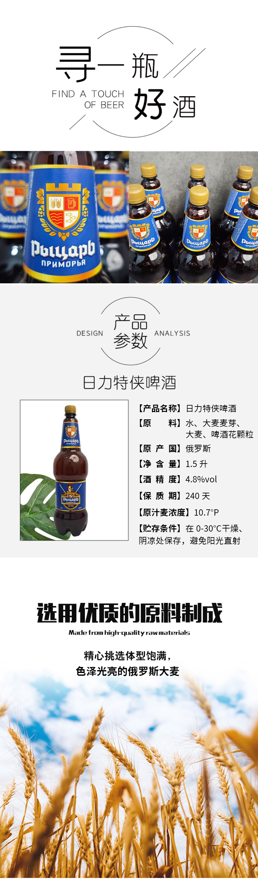 俄罗斯进口日力特侠啤酒1.5L (保质期到26年2月)