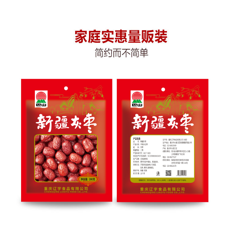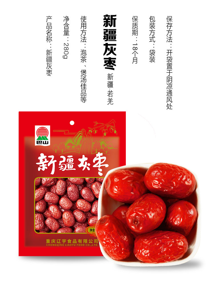 巴山新疆灰枣280g 和田红枣干骏枣零食非免洗新枣 精选新疆大枣