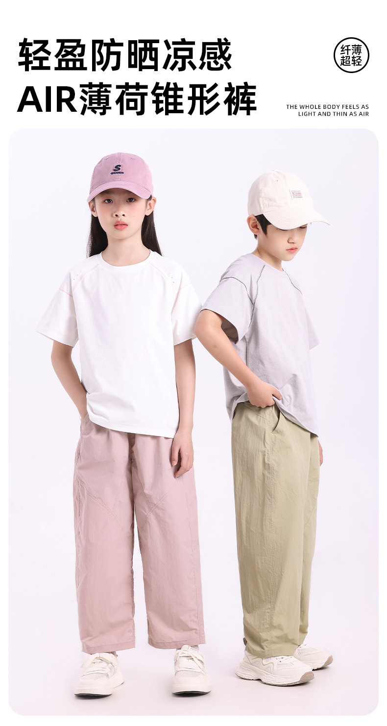 【49元1件】儿童裤子2026新款男童户外防晒长裤夏季女童中大童凉感弯刀休闲裤-6008693069