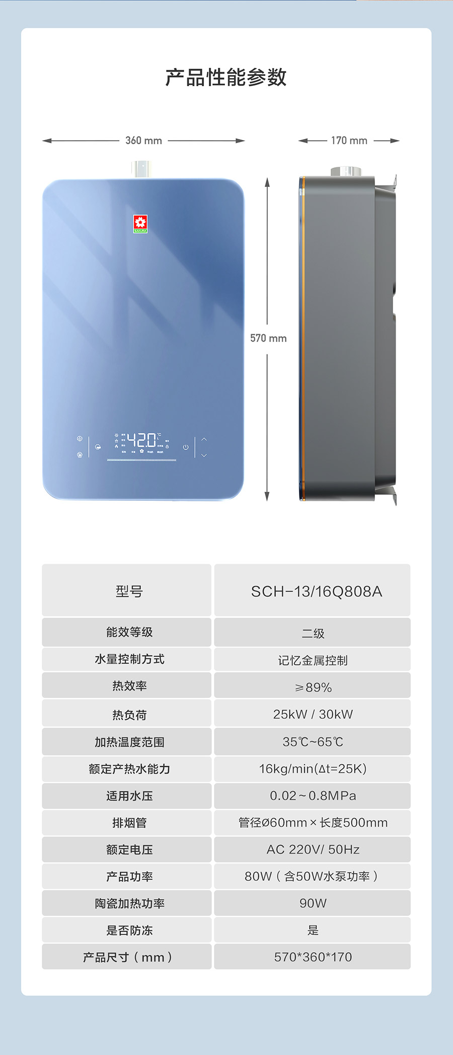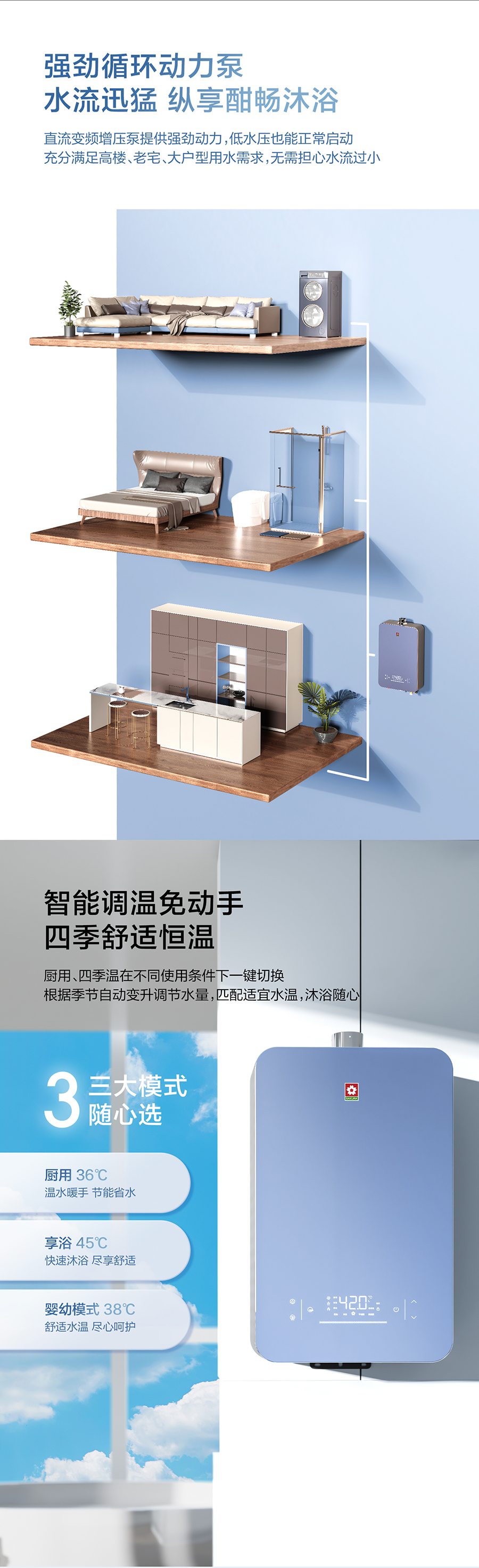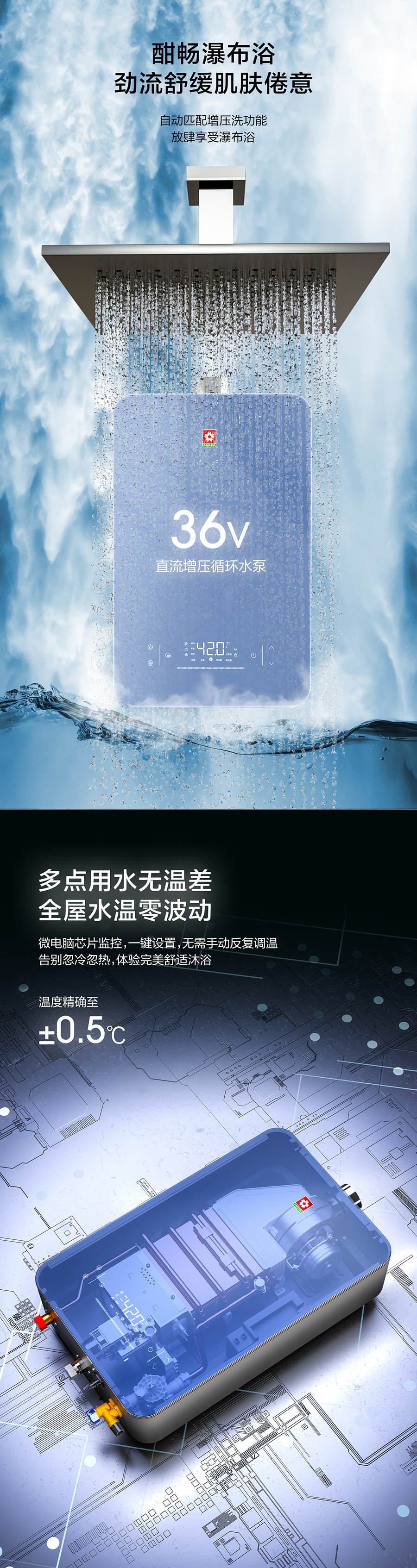 万和JSQ30-16YL33三管零冷水燃气热水器伺服瀑布增压燃气热水器