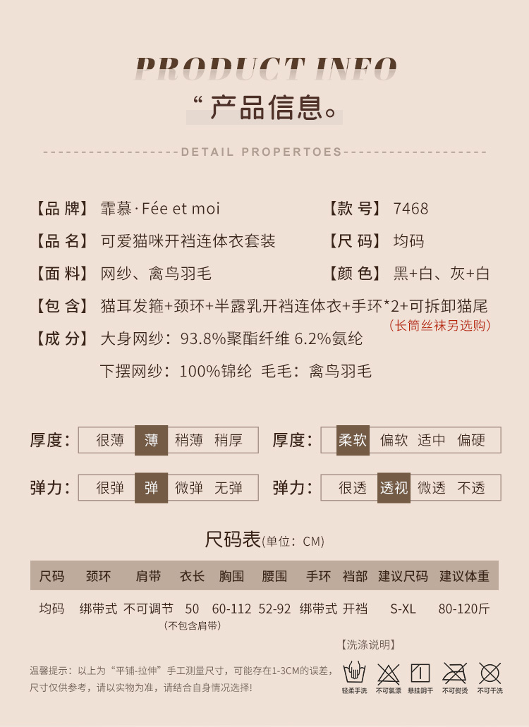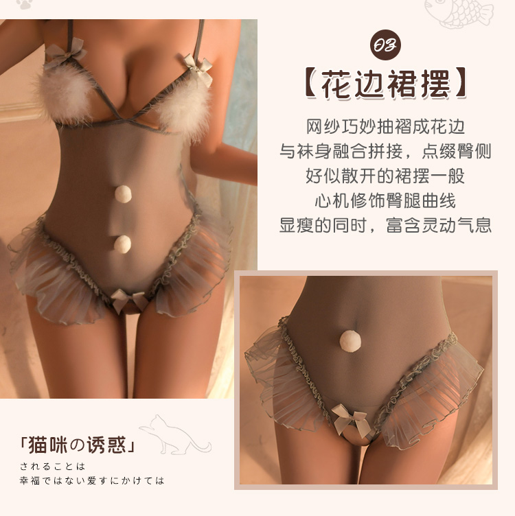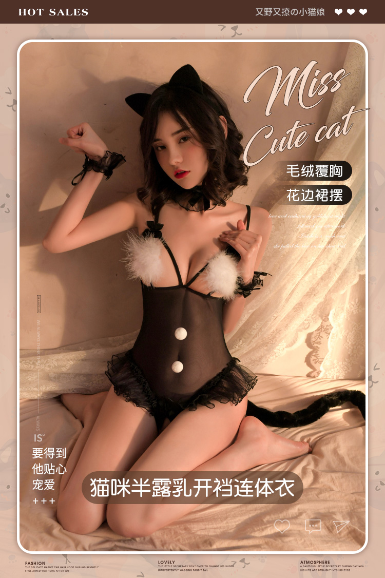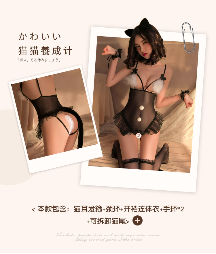 【瓶中的魔法】情趣内衣 可爱猫咪 开裆 连体 衣套 制服 女士内衣 套装 型号:7468