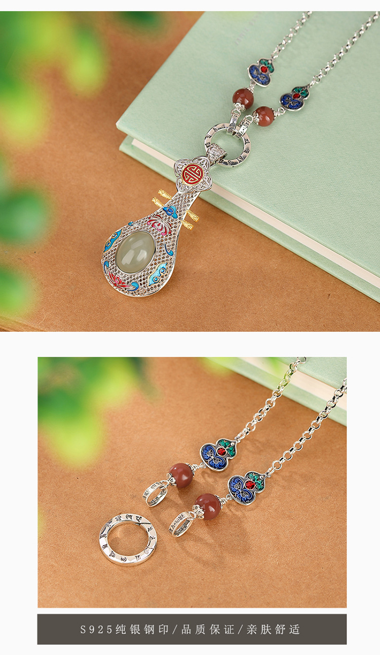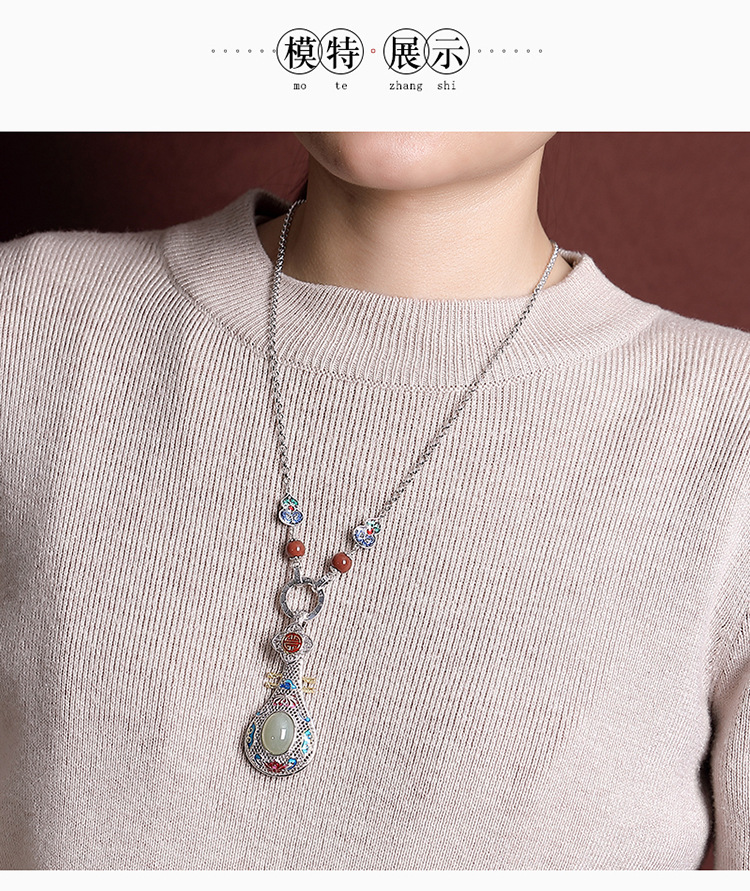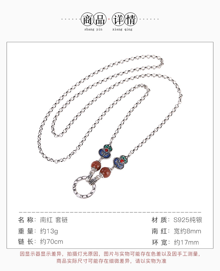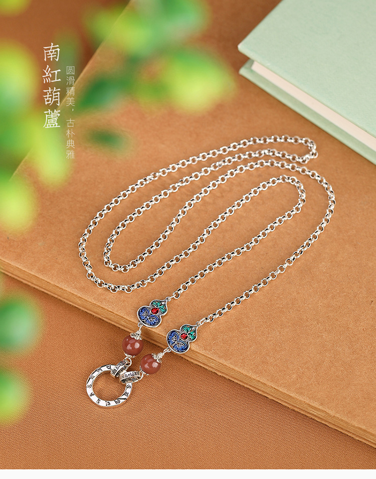 【葫芦双鱼】S925银南红复古景泰蓝福禄六字真言项链套链【CW-XL00341】