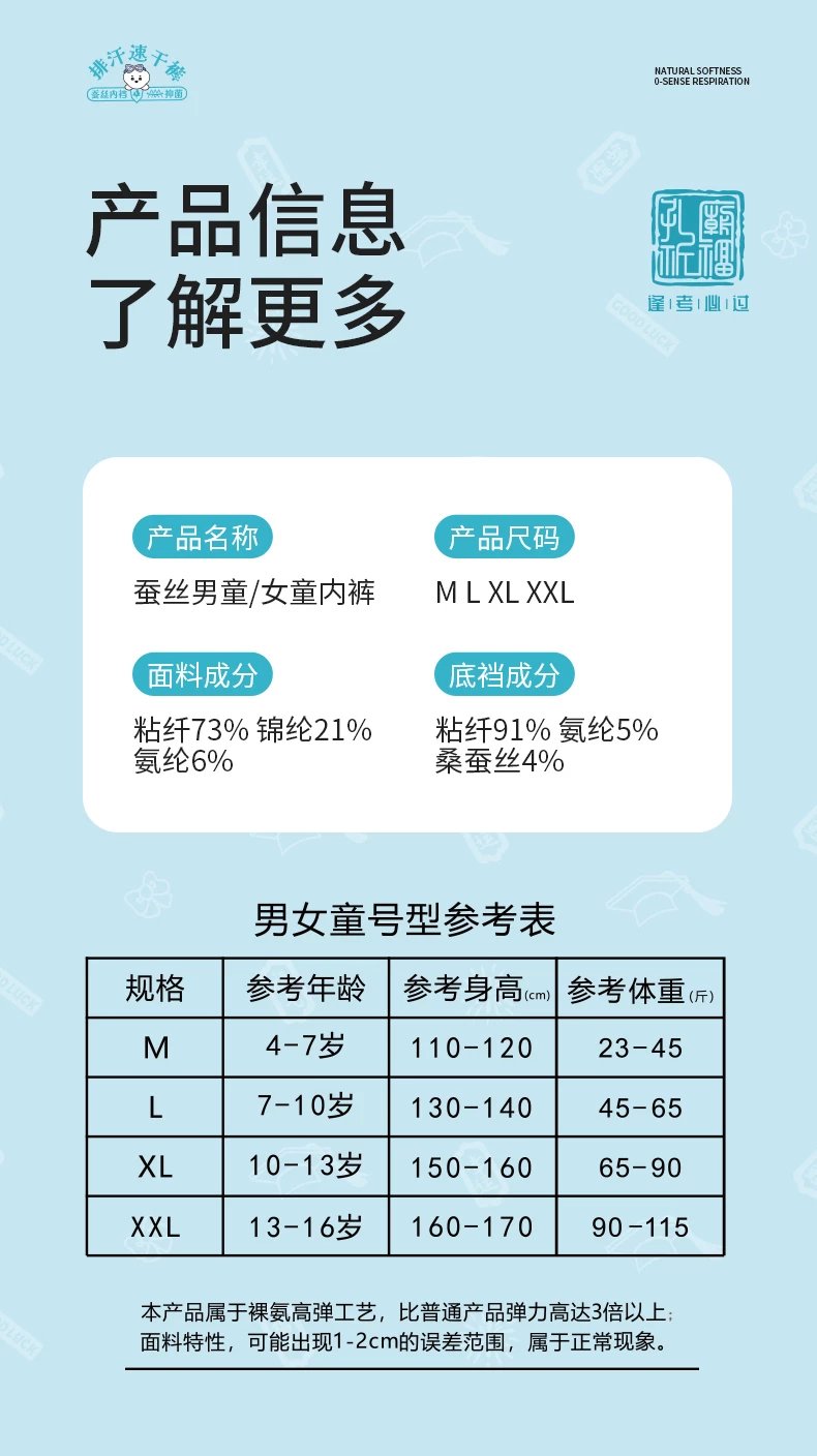 蚕丝裆排汗速干, 可以保持空气流通和呼吸畅快, 让孩子远离潮湿和瘙痒的烦恼。
