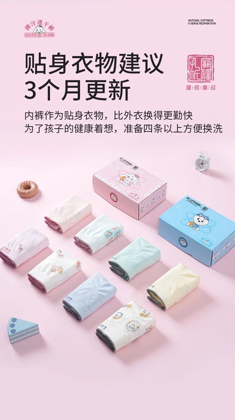 内裤的材料选用了高品质的莫代尔面料 快速吸湿排汗,能够帮助宝宝保持干爽的感觉 让宝宝穿得更加舒适自在