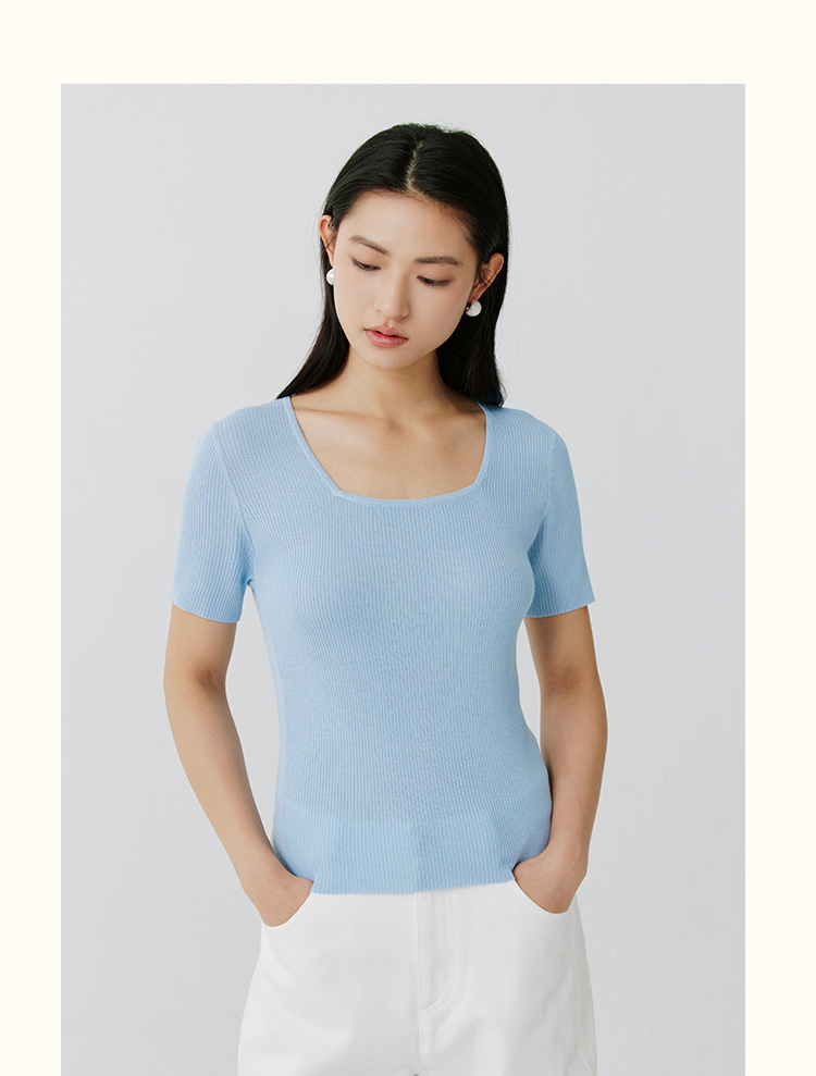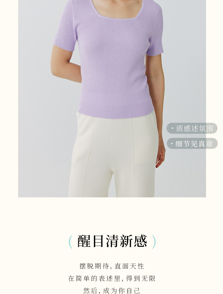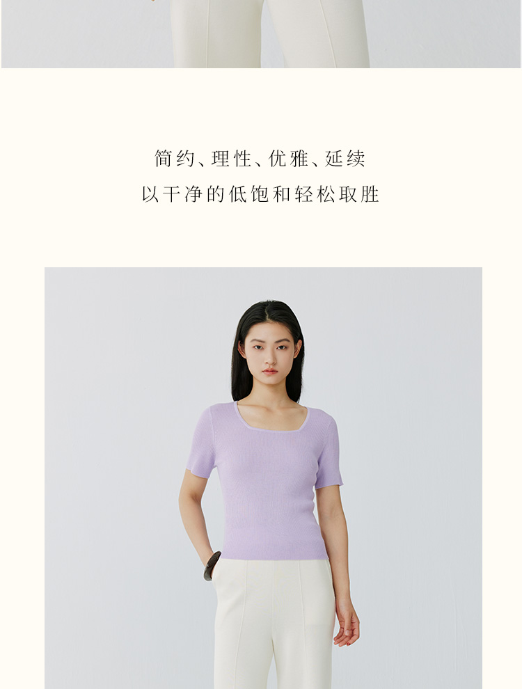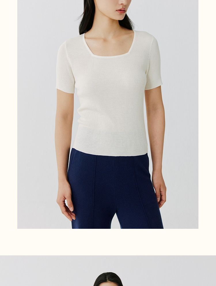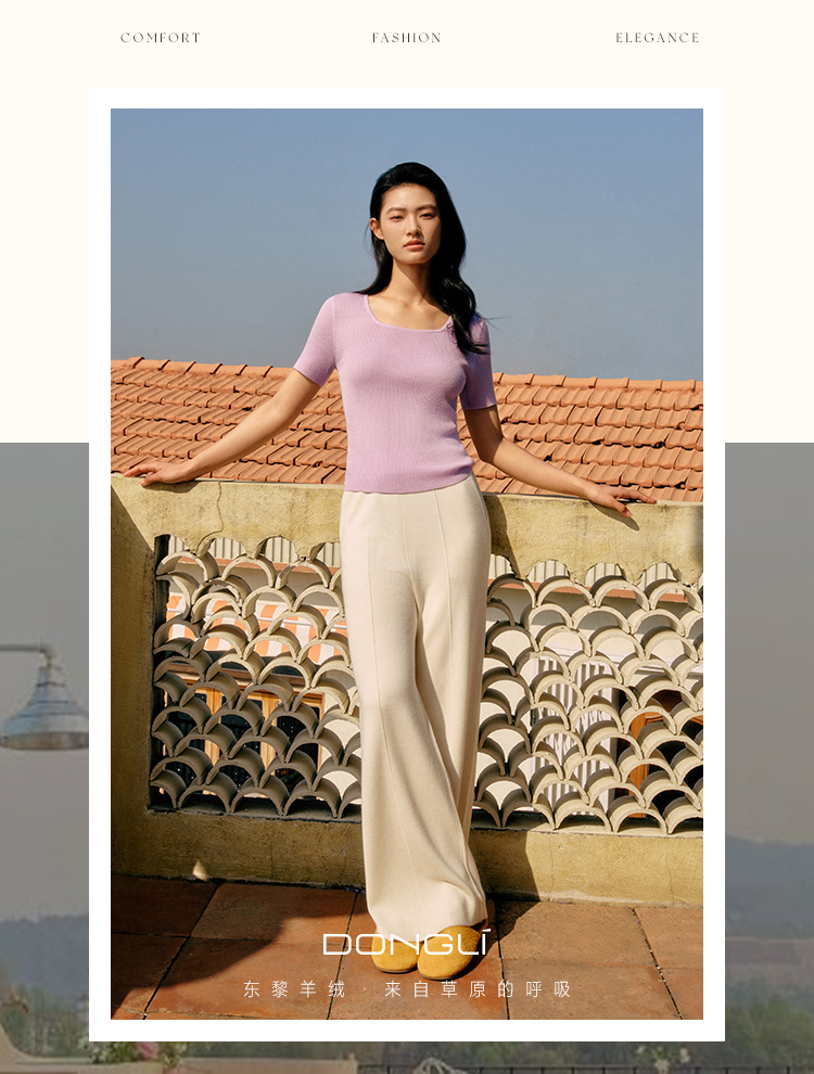 东黎 • 岛屿假日—万能公式 桑蚕丝山羊绒女士春夏精纺方领女短袖 4080