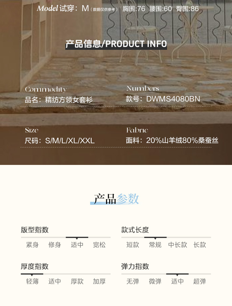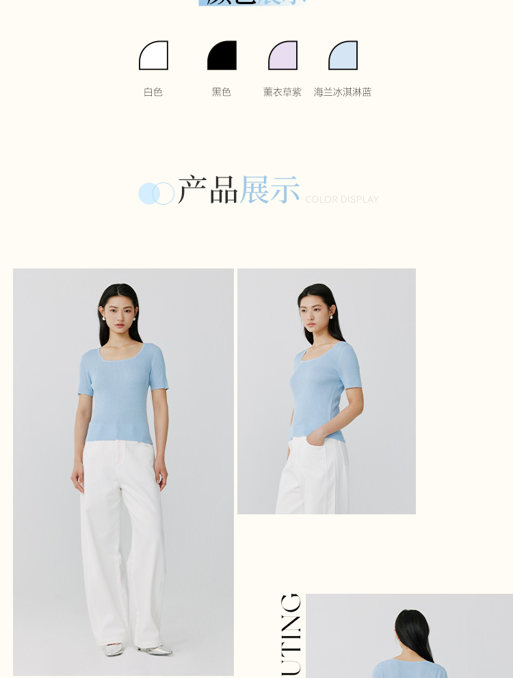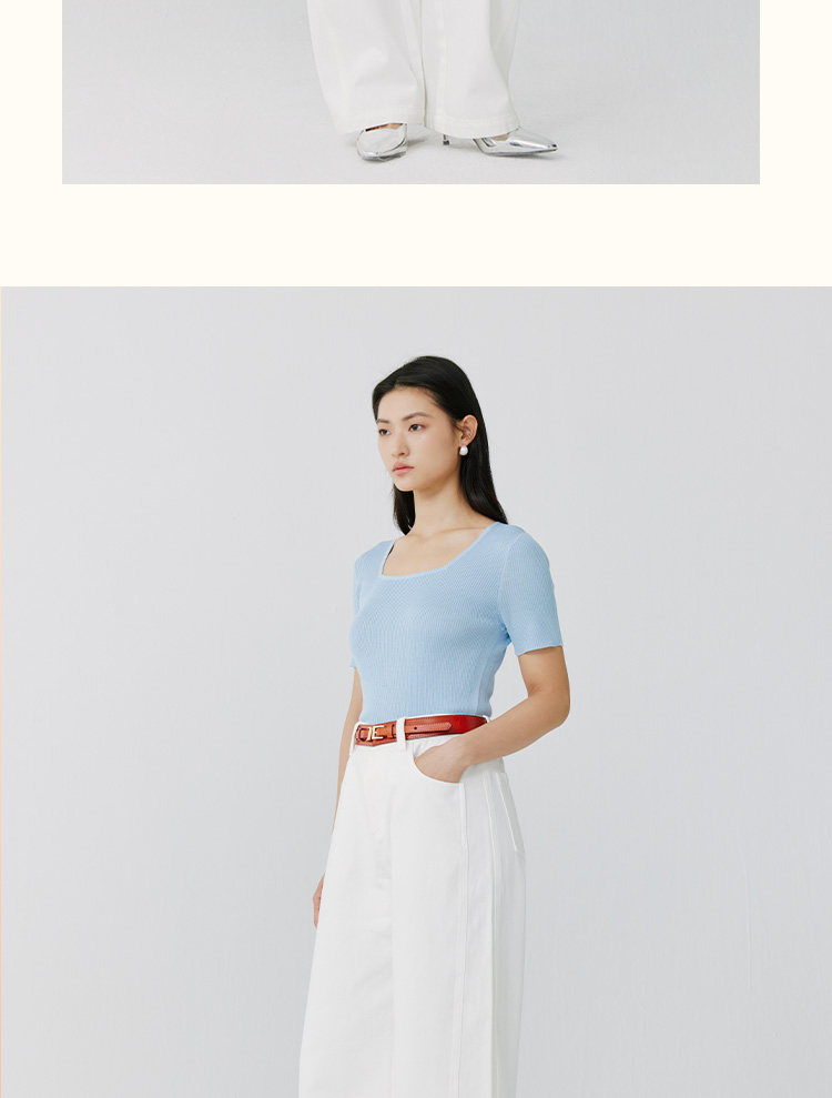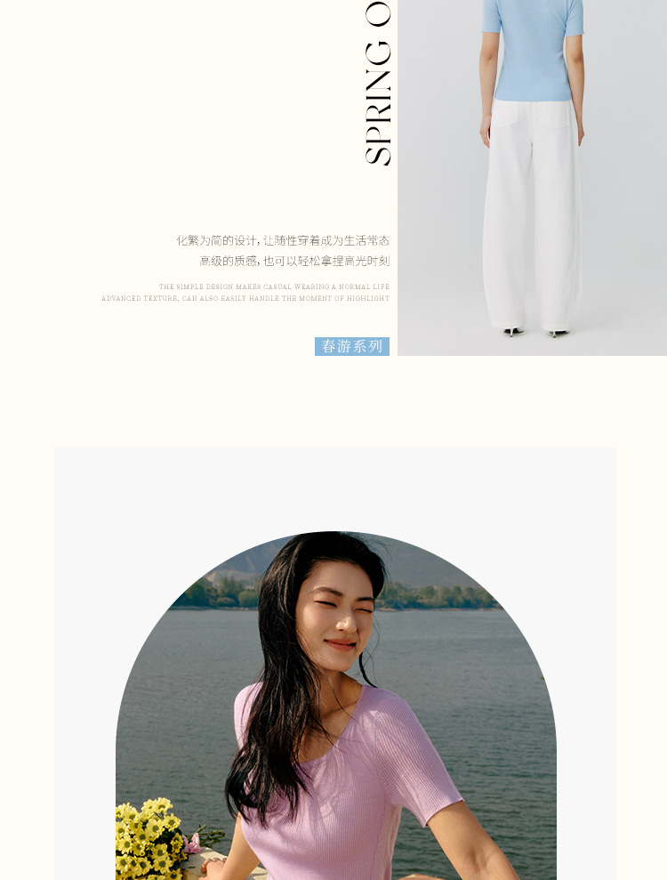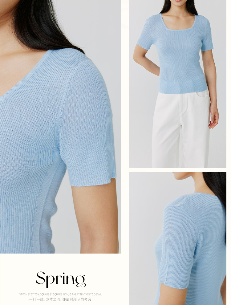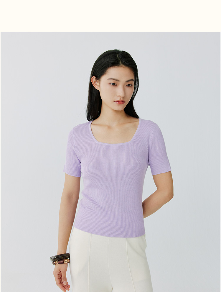 东黎 • 岛屿假日—万能公式 桑蚕丝山羊绒女士春夏精纺方领女短袖 4080