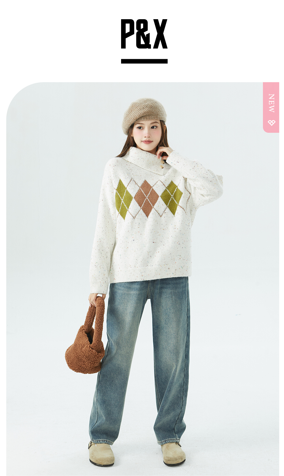P&X设计师女装套头休闲短款毛衣824418180 花色