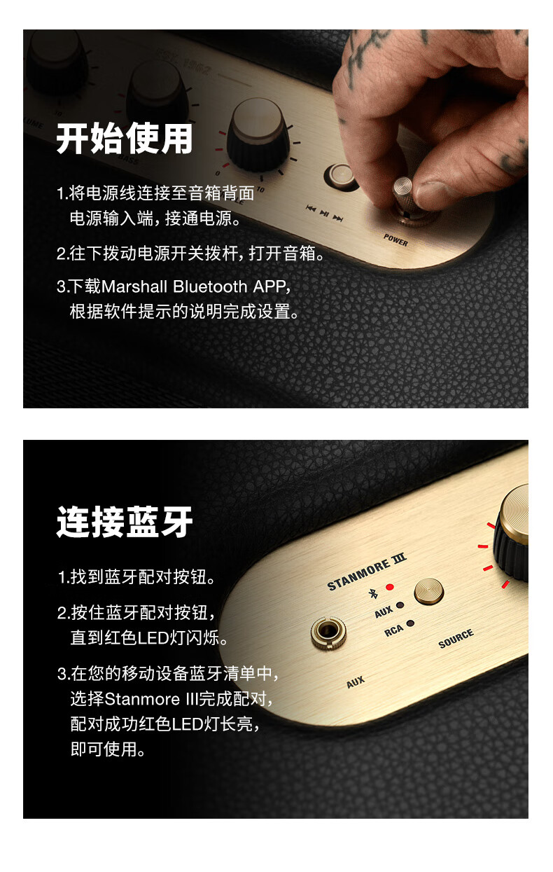 MARSHALL(马歇尔)STANMORE III 音箱3代无线蓝牙摇滚家用重低音音响 黑色