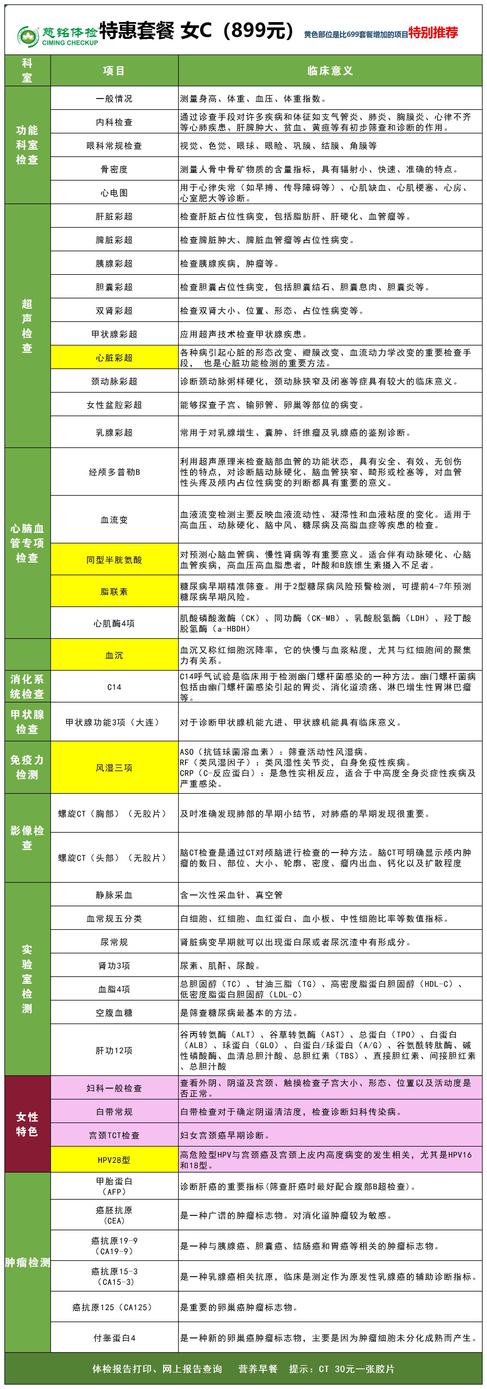 慈铭体检-特惠套餐(女)C