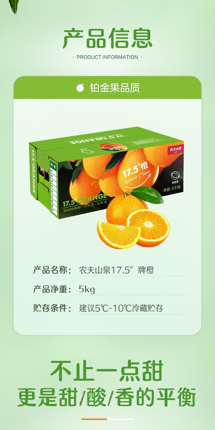 农夫山泉 17.5橙 脐橙/橙子 净重10斤装 铂金果 生鲜水果年货礼盒