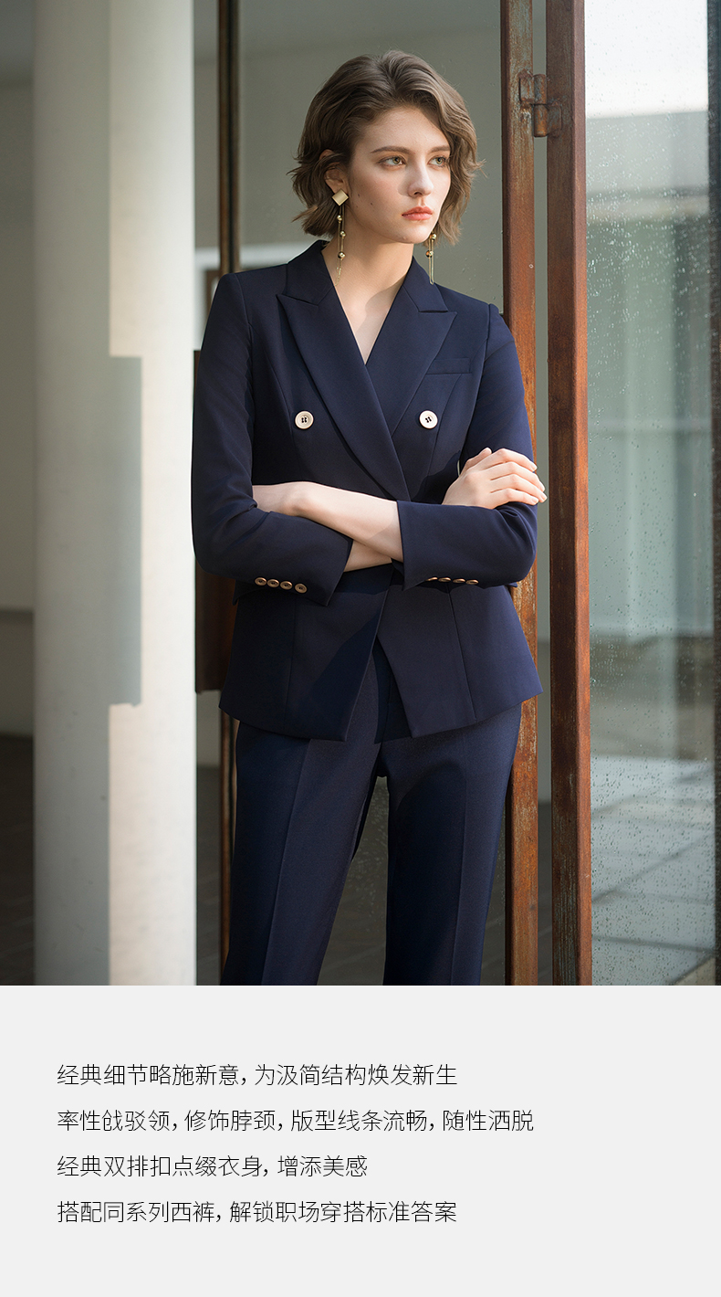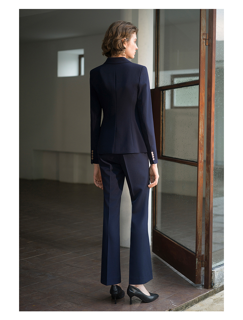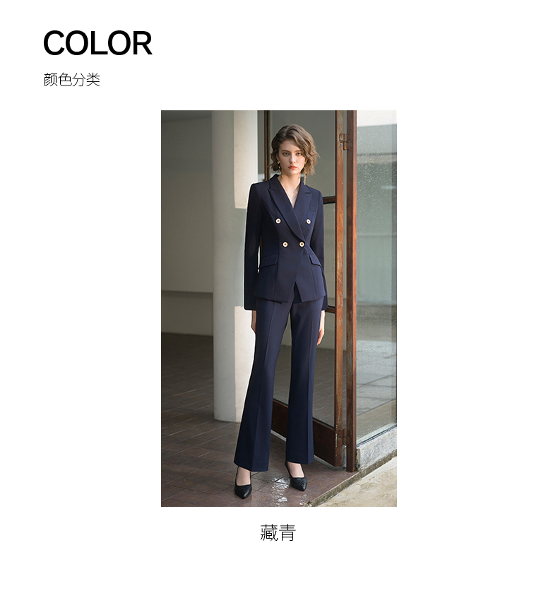 IWY/藏青色职业西装微喇裤两件套设计感高级气质时尚通勤干练C11355+P31356