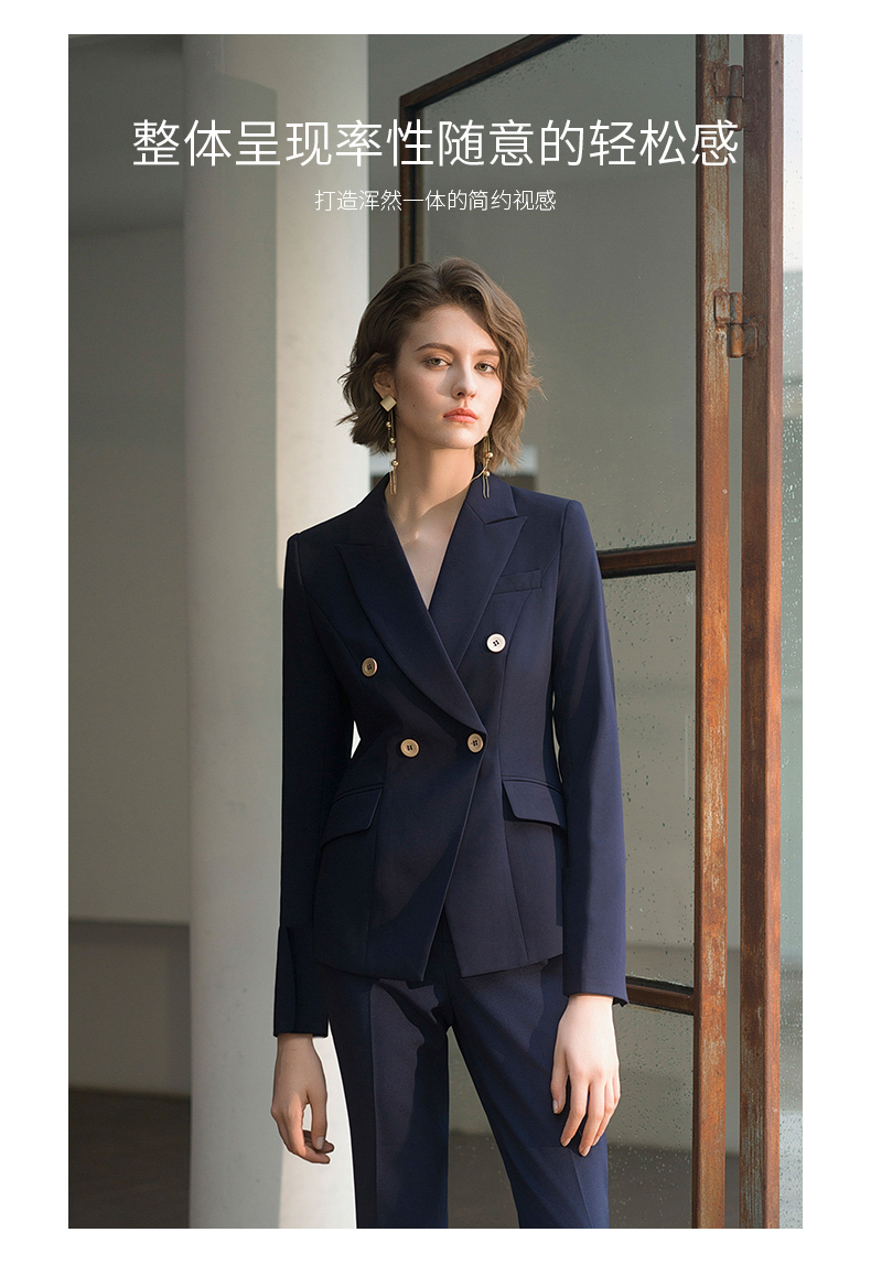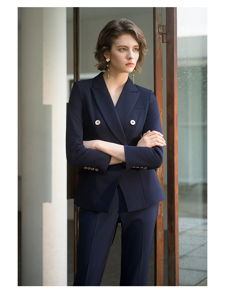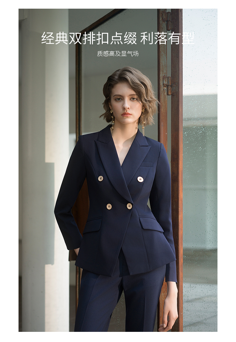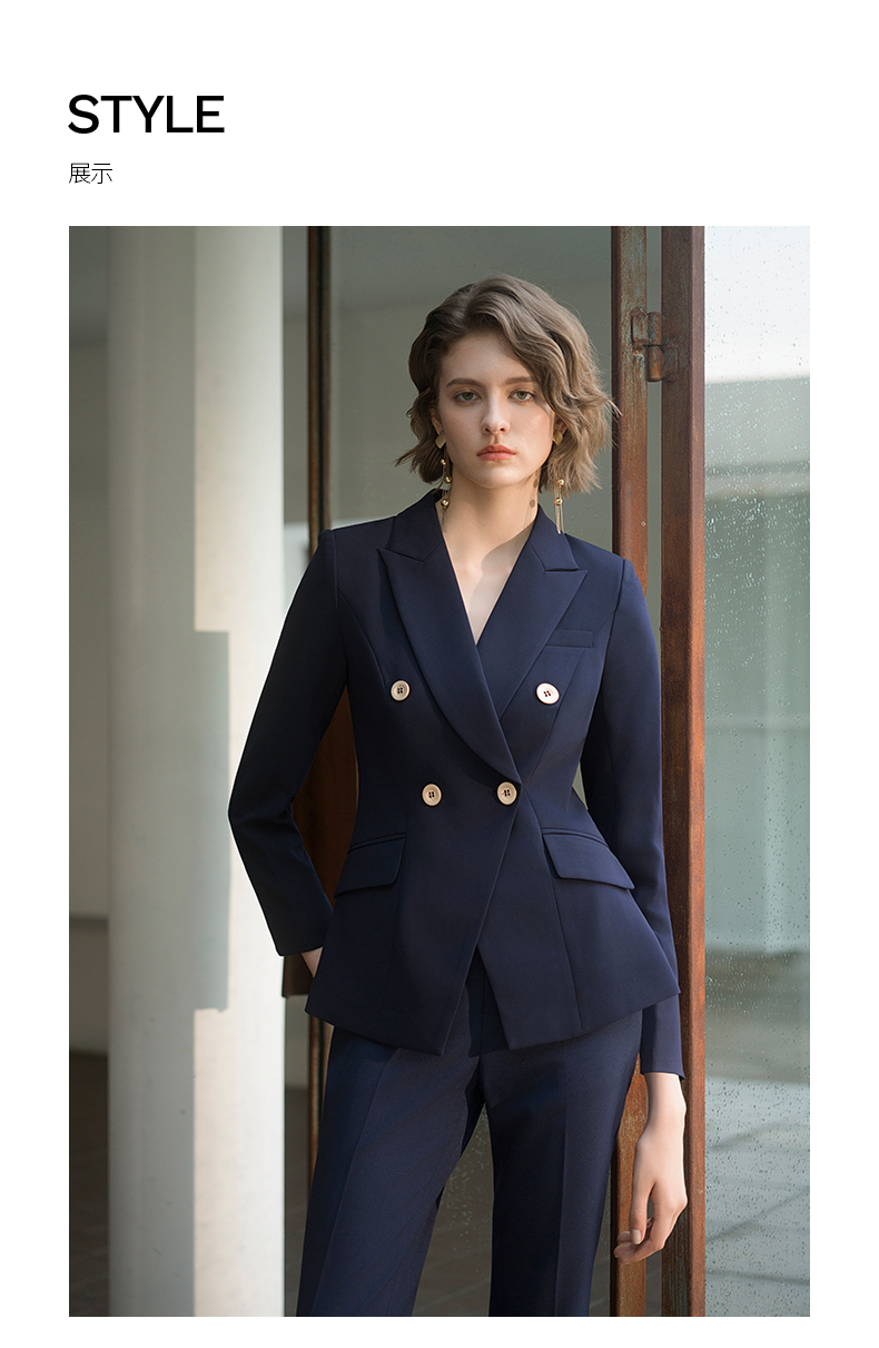 IWY/藏青色职业西装微喇裤两件套设计感高级气质时尚通勤干练C11355+P31356