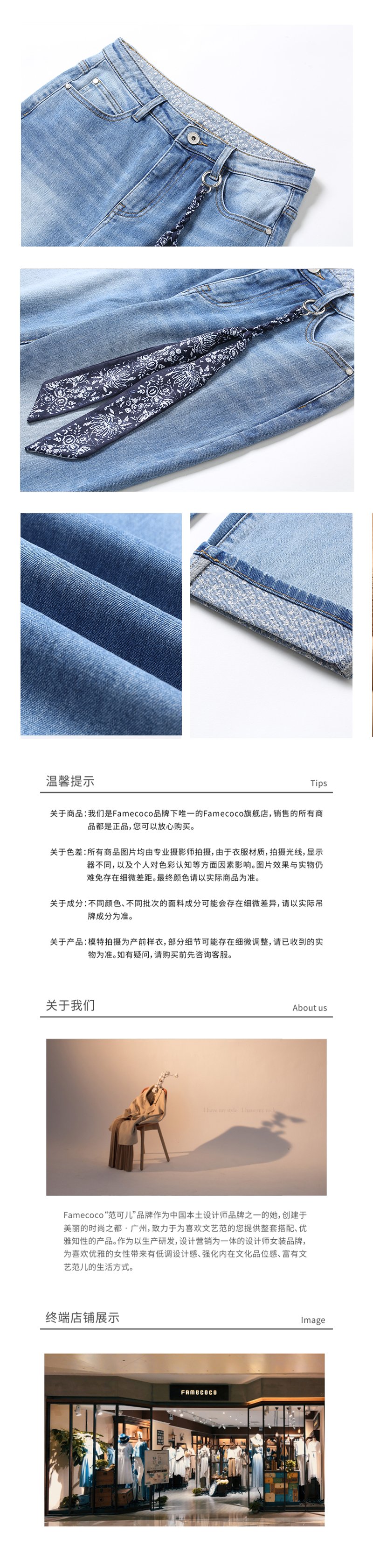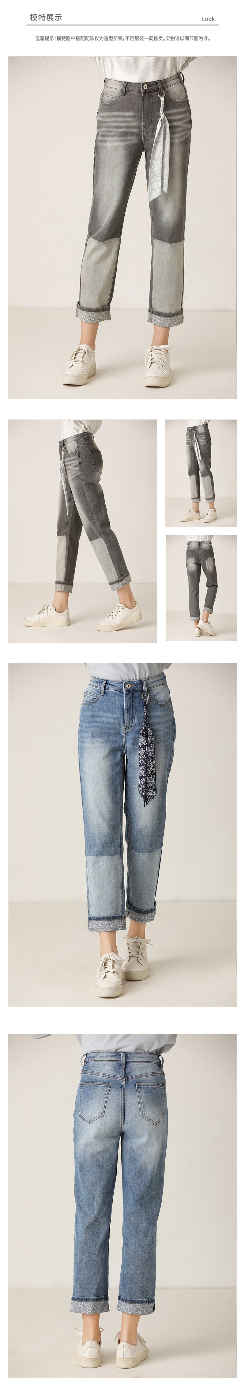 famecoco范可儿牛仔裤女复古拼色直筒九分裤F201GA018