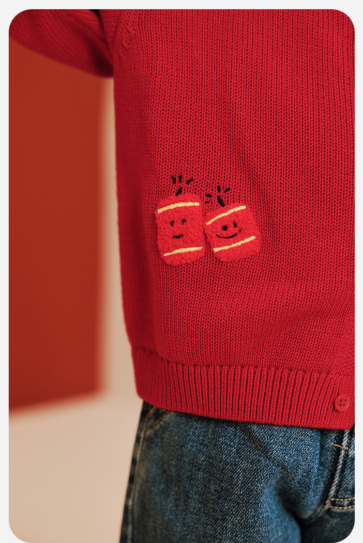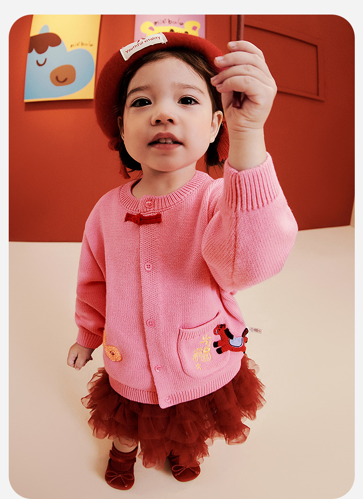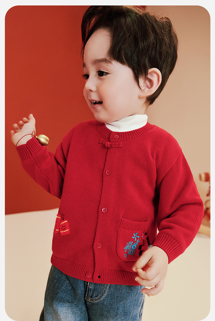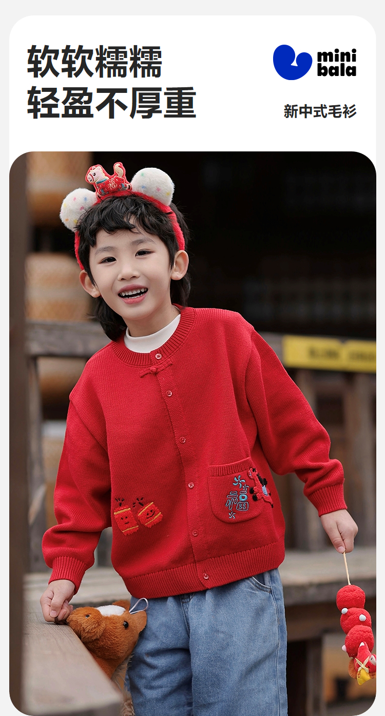 【密扇联名】迷你巴拉男女童宝宝毛衣2025冬季新中式新年萌趣开衫