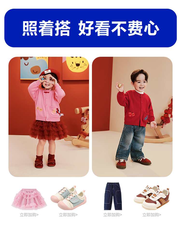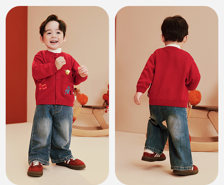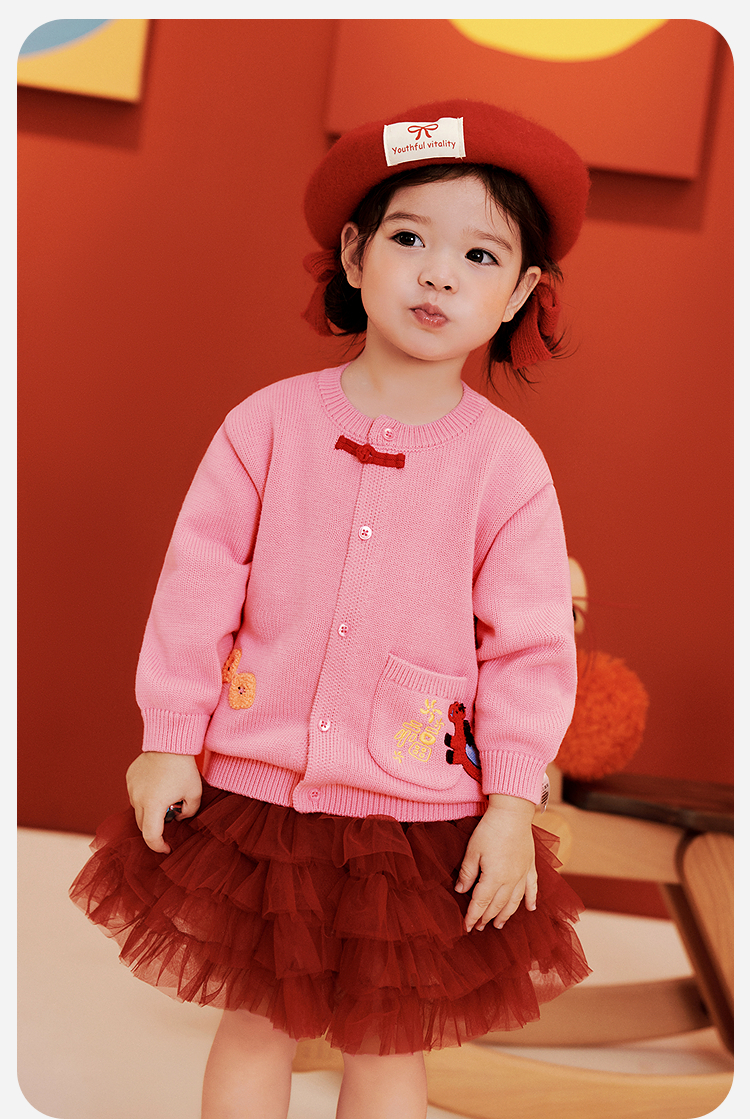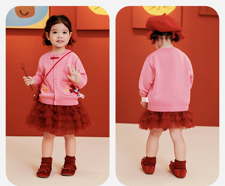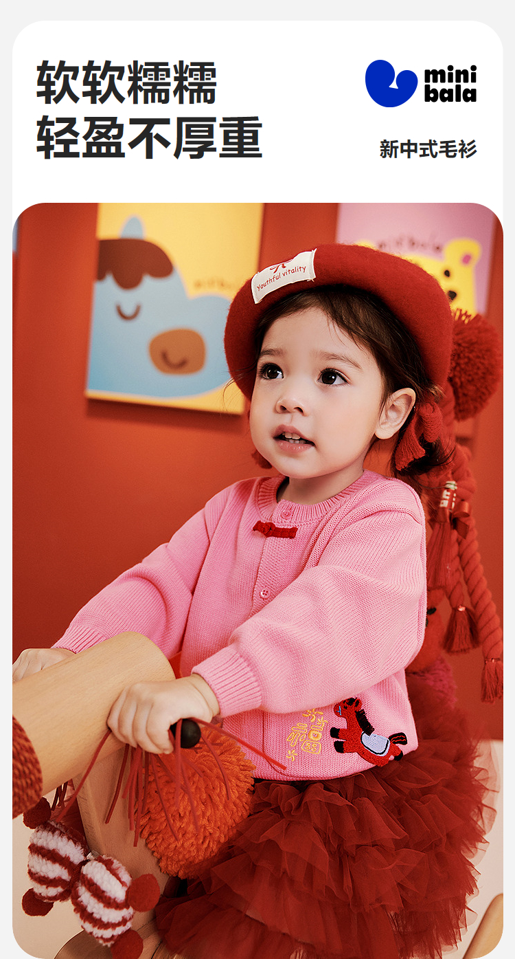 【密扇联名】迷你巴拉男女童宝宝毛衣2025冬季新中式新年萌趣开衫