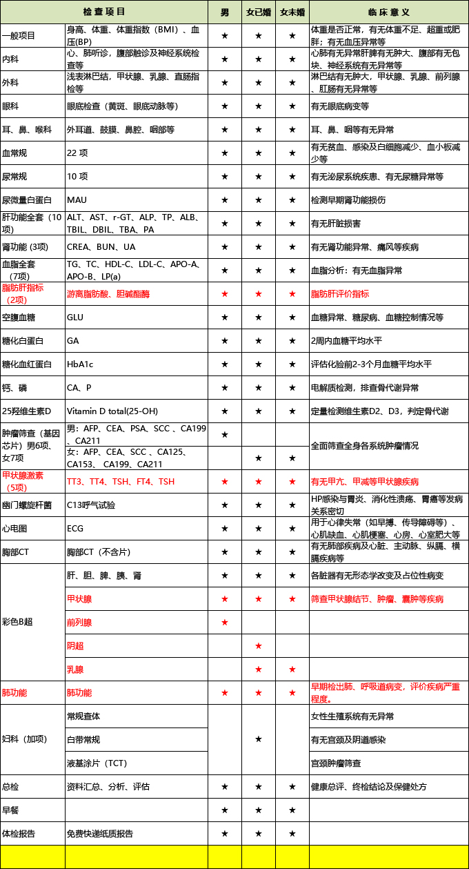 六院官方体检套餐: