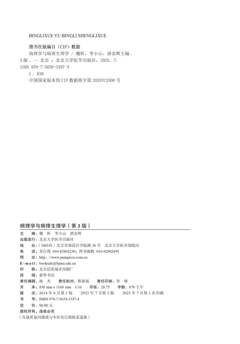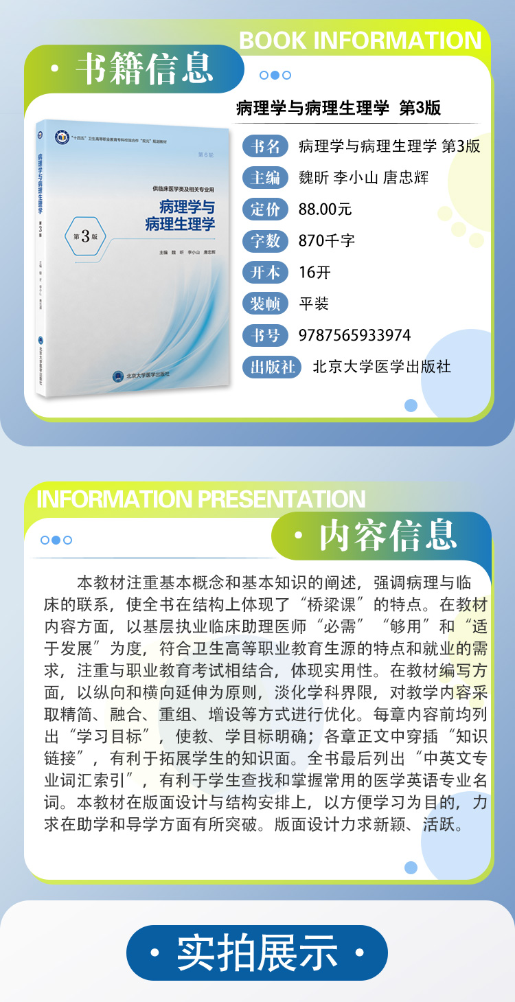 病理学与病理生理学 第3三版 十四五卫生高等职业教育专科校院合作“双元”规划教材 魏昕 李小山 唐忠辉 主编 北京大学医学出版社