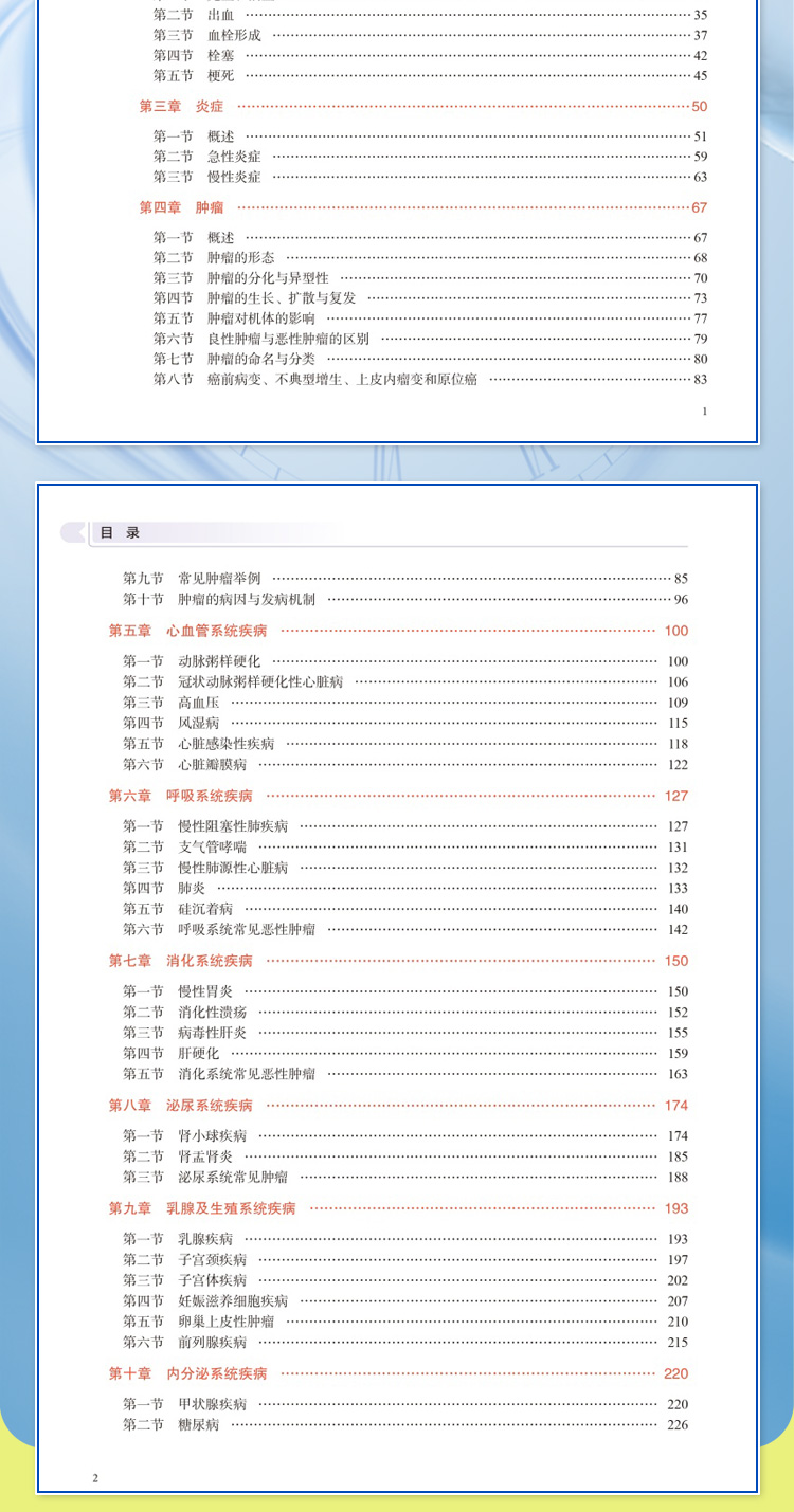 《病理学与病理生理学》(第3版)是我社高职临床系列教材(第6轮)之一。本教材分为上、下两篇,上篇为病理学,下篇为病理生理学。病理学部分共十一章,其中第一章至第四章为总论,重点阐述基本病理变化,突出基本理论、基本知识和基本技能;第五章至第十一章为各论,主要阐述各个系统常见病、多发病的病理变化和病理临床联系。病理生理学部分共十三章,第十二章为疾病概论,第十三章至第十九章为基本病理过程,第二十章至第二十三章为重要器官功能不全,第二十四章为细胞凋亡与疾病。本教材注重基本概念和基本知识的阐述,强调病理与临床的联系,使全书在结构上体现了“桥梁课”的特点。在教材内容方面,以基层执业临床助理医师“必需”“够用”和“适于发展”为度,符合卫生高等职业教育生源的特点和就业的需求,注重与职业教育考试相结合,体现实用性。在教材编写方面,以纵向和横向延伸为原则,淡化学科界限,对教学内容采取精简、融合、重组、增设等方式进行优化。每章内容前均列出“学习目标”,使教、学目标明确;各章正文中穿插“知识链接”,有利于拓展学生的知识面。全书最后列出“中英文专业词汇索引”,有利于学生查找和掌握常用的医学英语专业名词。本教材在版面设计与结构安排上,以方便学习为目的,力求在助学和导学方面有所突破。版面设计力求新颖、活跃。