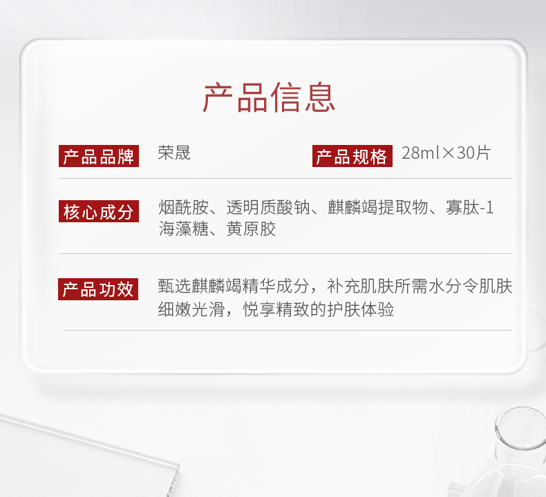 【一片敷出水光透靓肌】荣晟麒麟竭熬夜美肌面膜 深层补水保湿 收缩毛孔 冷敷舒润 改善糙红 30片/盒