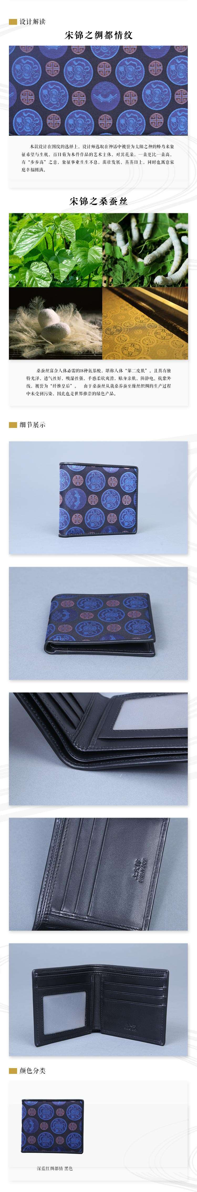 SAINTJOY/上久楷 男士宋锦皮夹钱包 深蓝红绸都情·黑色 BMS18D0101