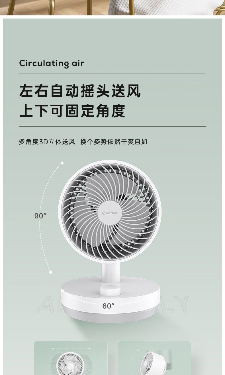 艾美特(AIRMATE)电风扇 空气循环扇FA15-X40