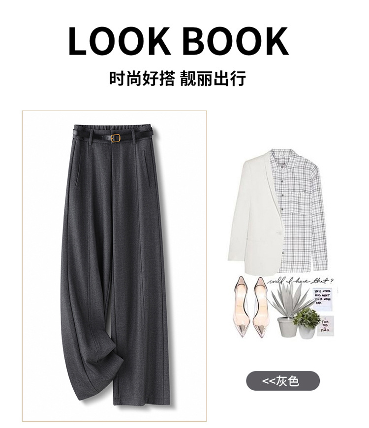 【舒适亲肤❗️软而不塌】灰色天丝羊毛西装阔腿裤女秋季2025新款高腰秋冬休闲垂感直筒长裤。jc