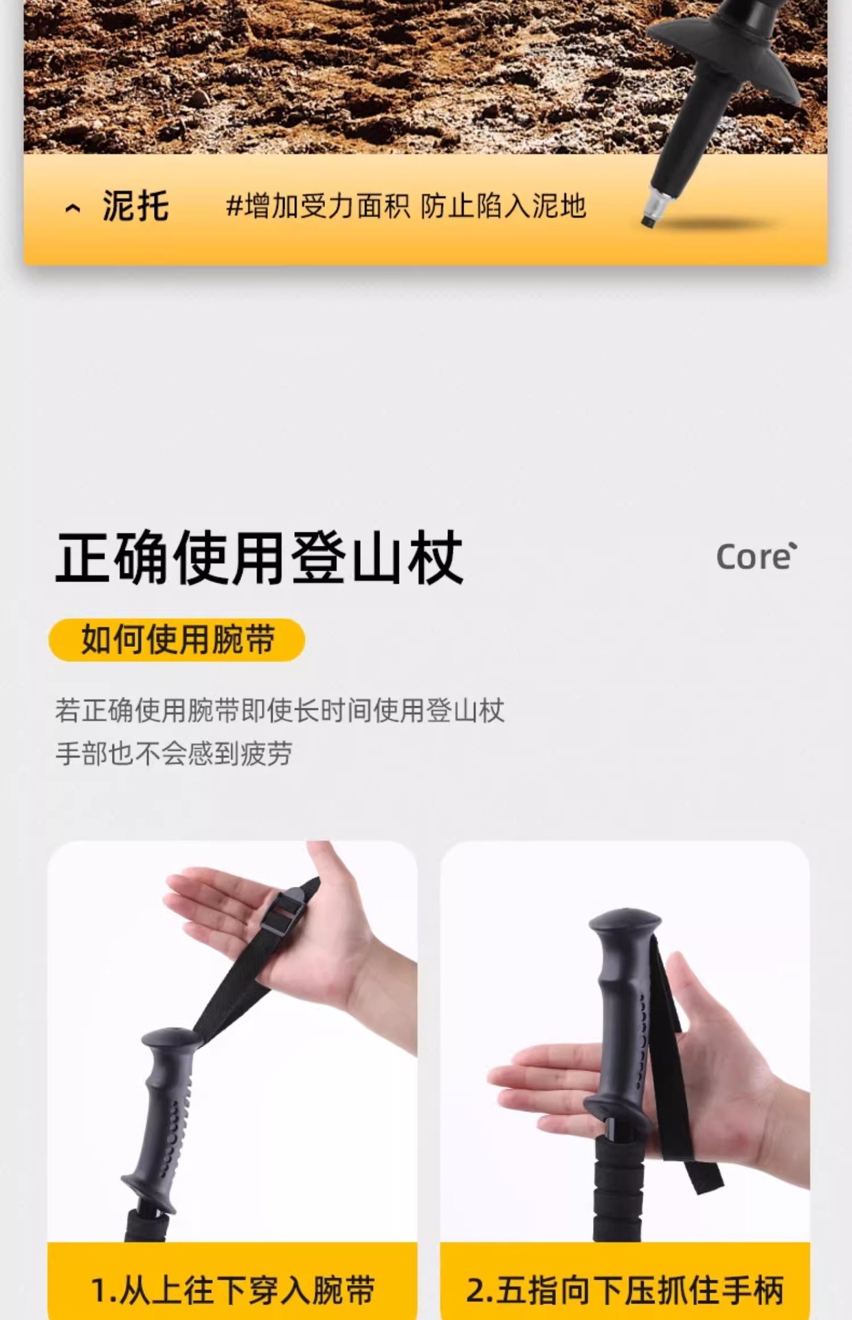 【匠心打造❗️舒适手柄】登山杖手杖碳素超轻伸缩折叠滑雪防滑拐杖多功能户外爬山徒步装备。jc