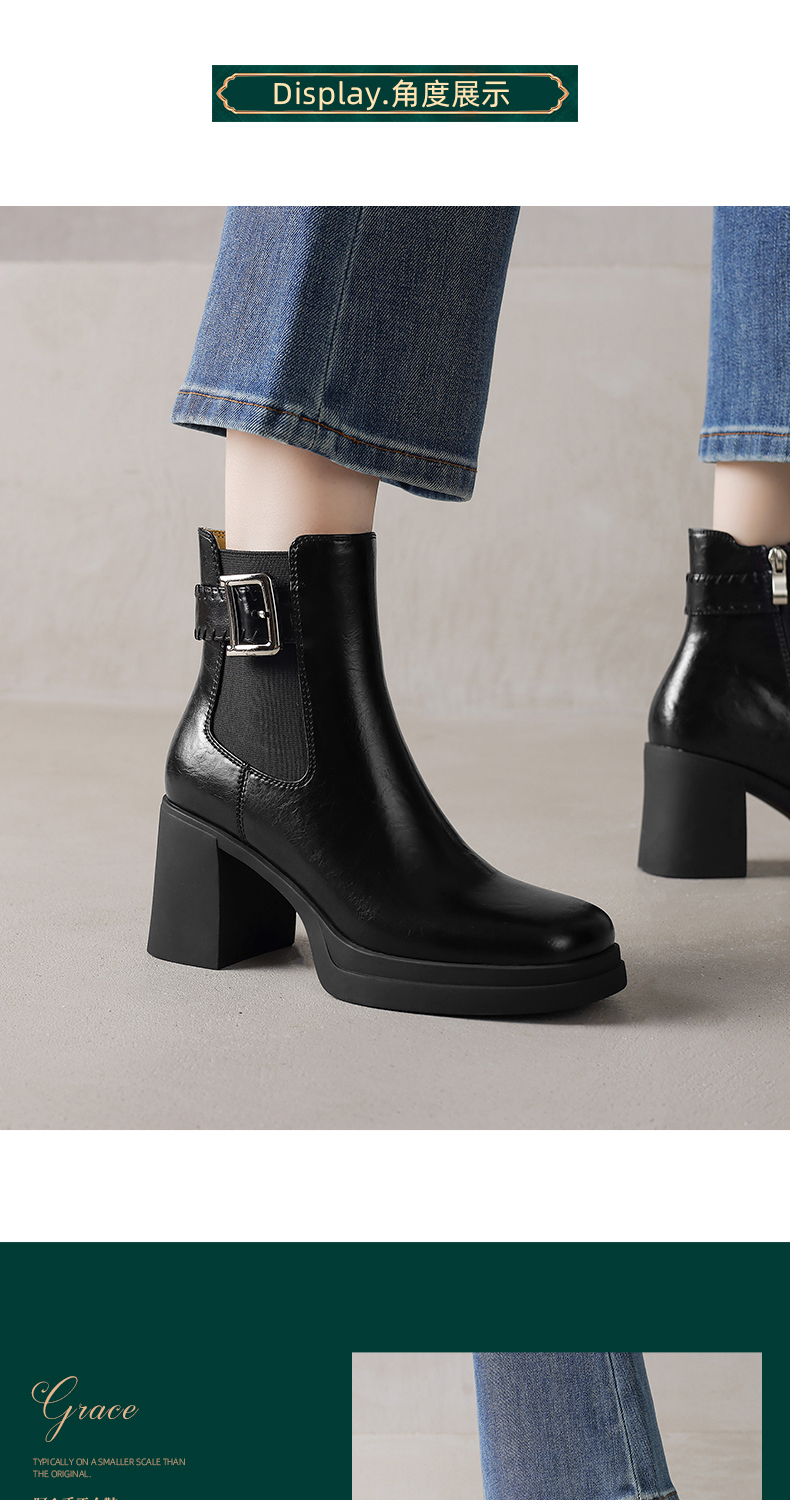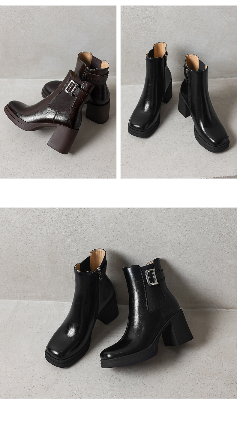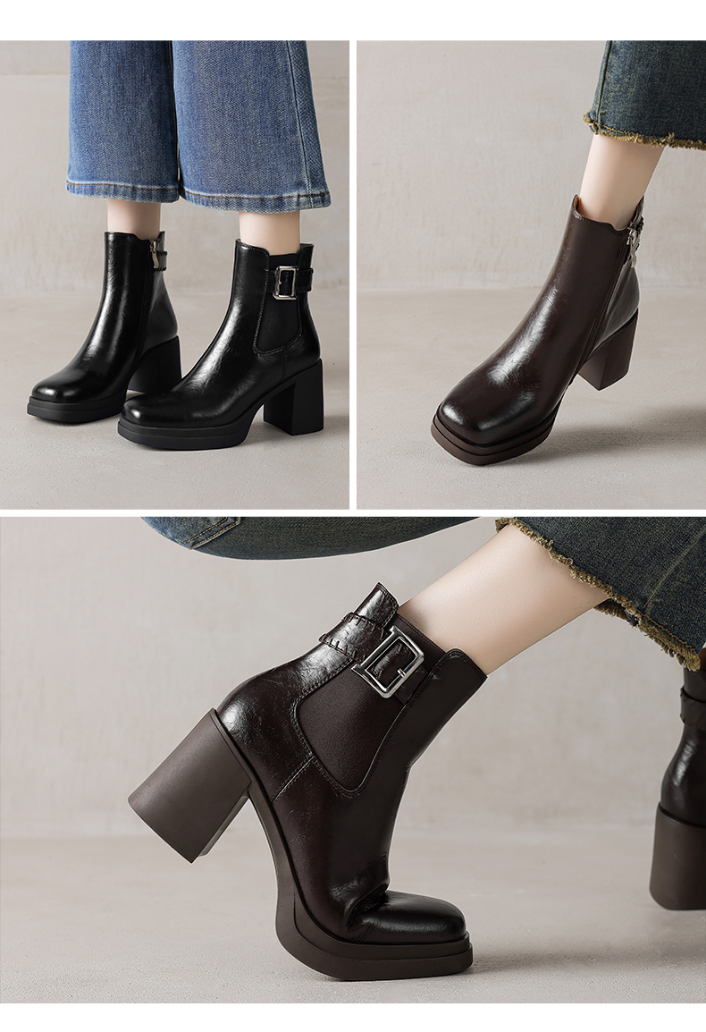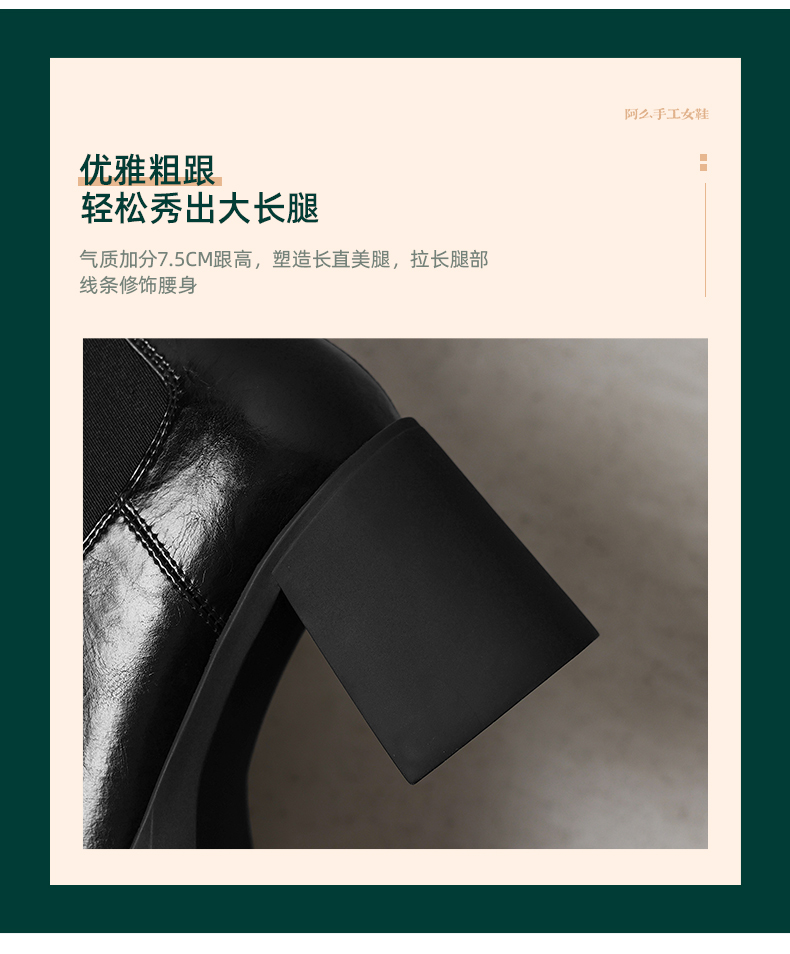 阿么手工女鞋超高跟洋气时髦短靴2025新款真皮靴子薄款7.5CM