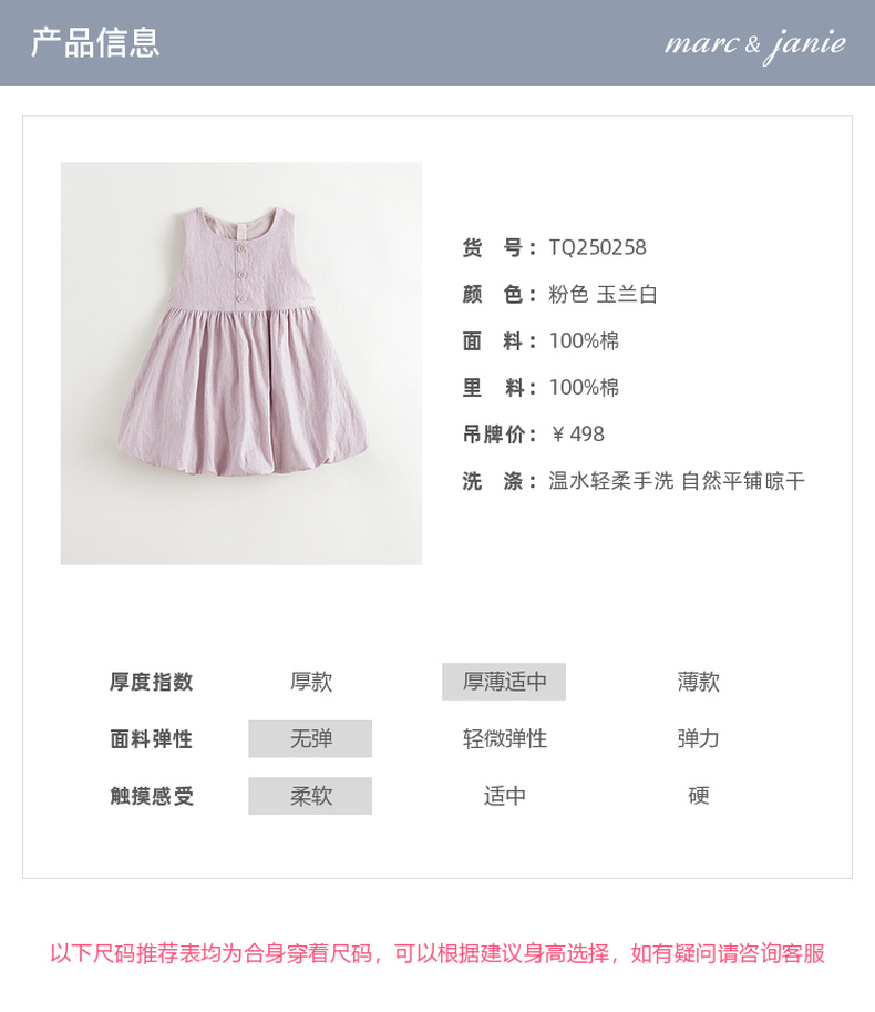 马克珍妮女童提花花苞背心裙宝宝连衣裙2025年夏装新款裙子250258