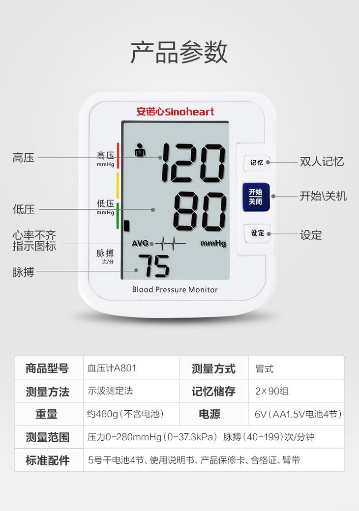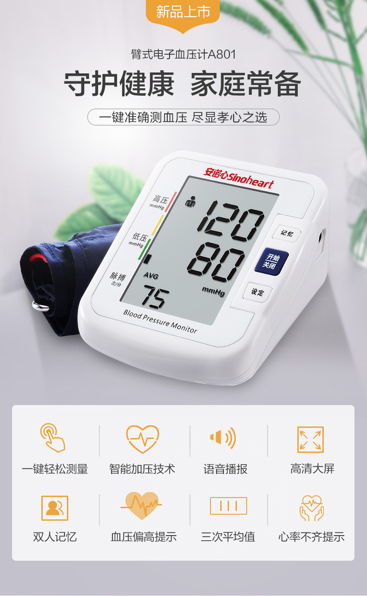 【三诺-诺凡】臂式电子血压计 BA-801