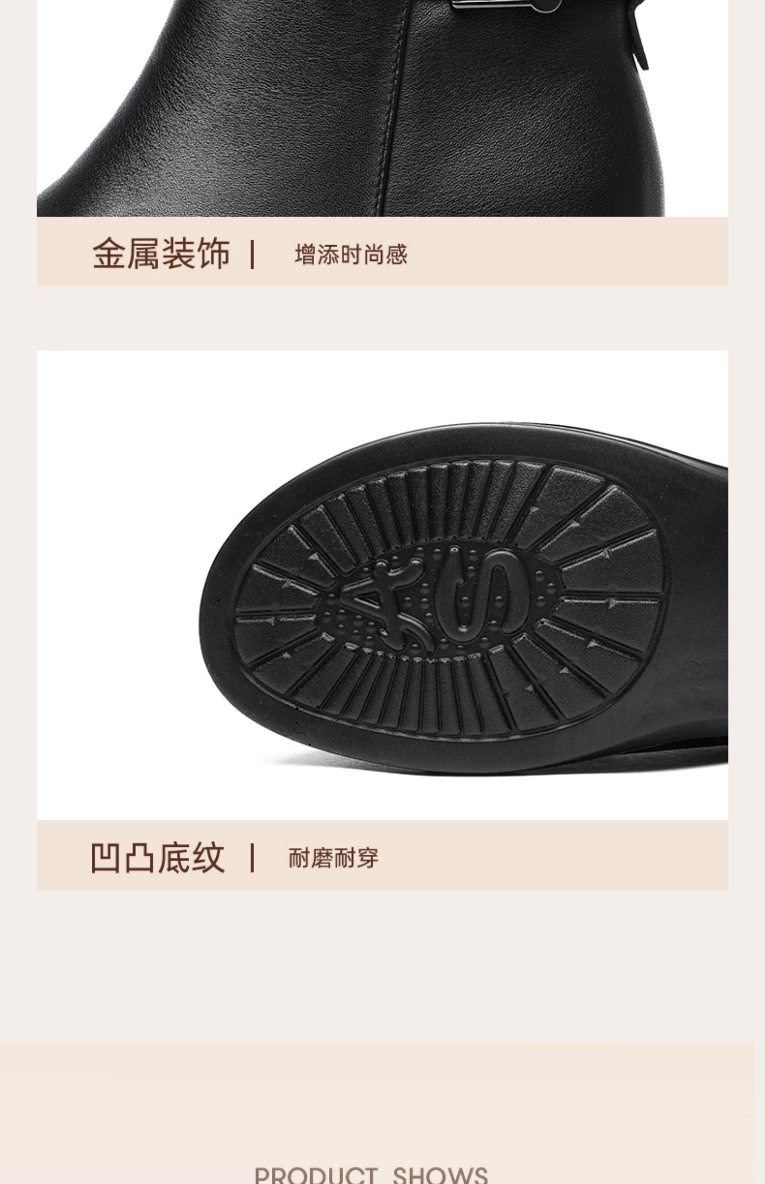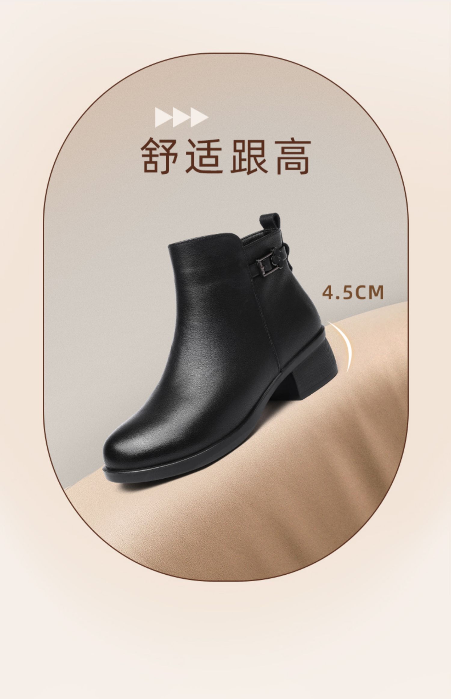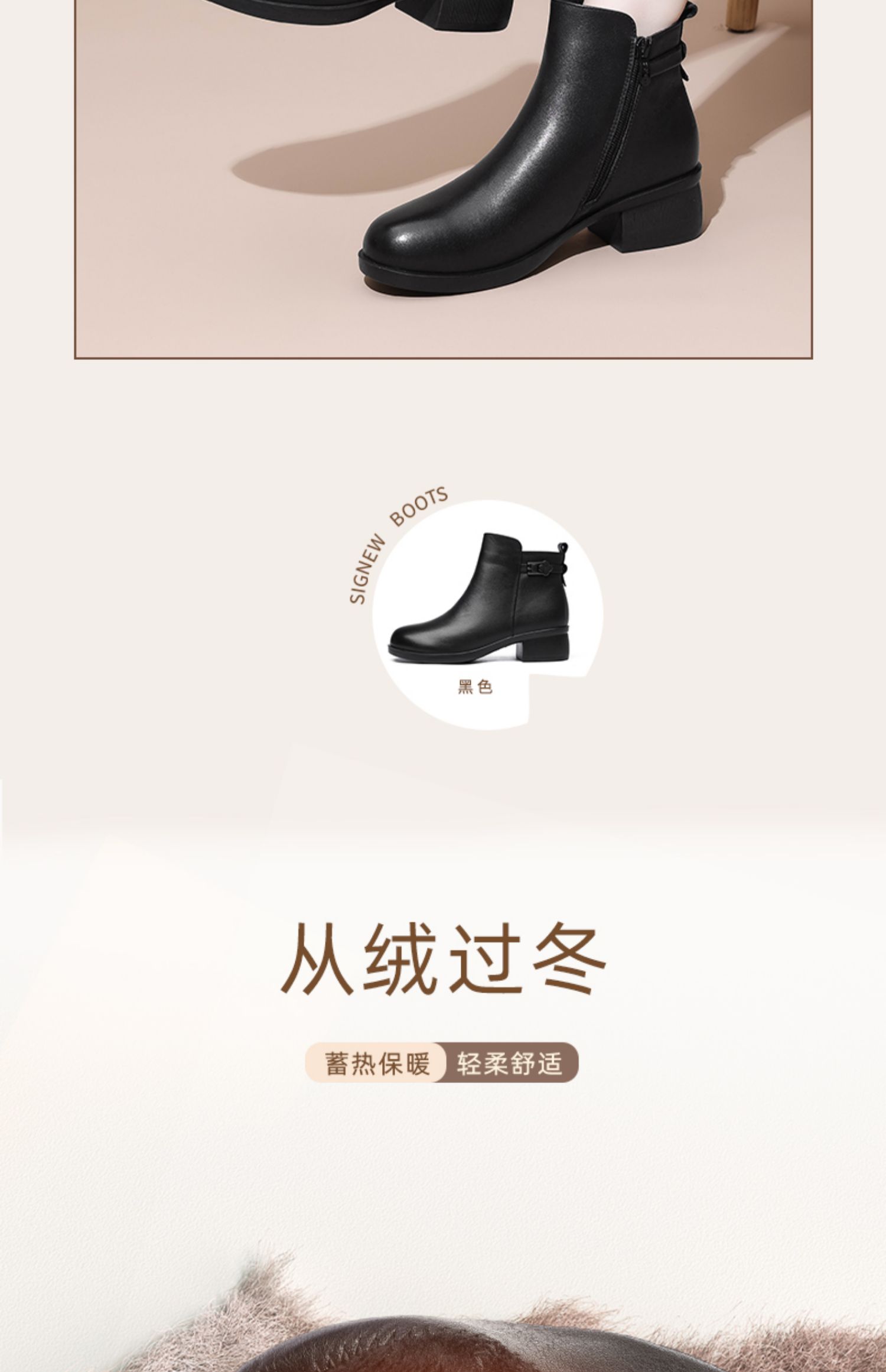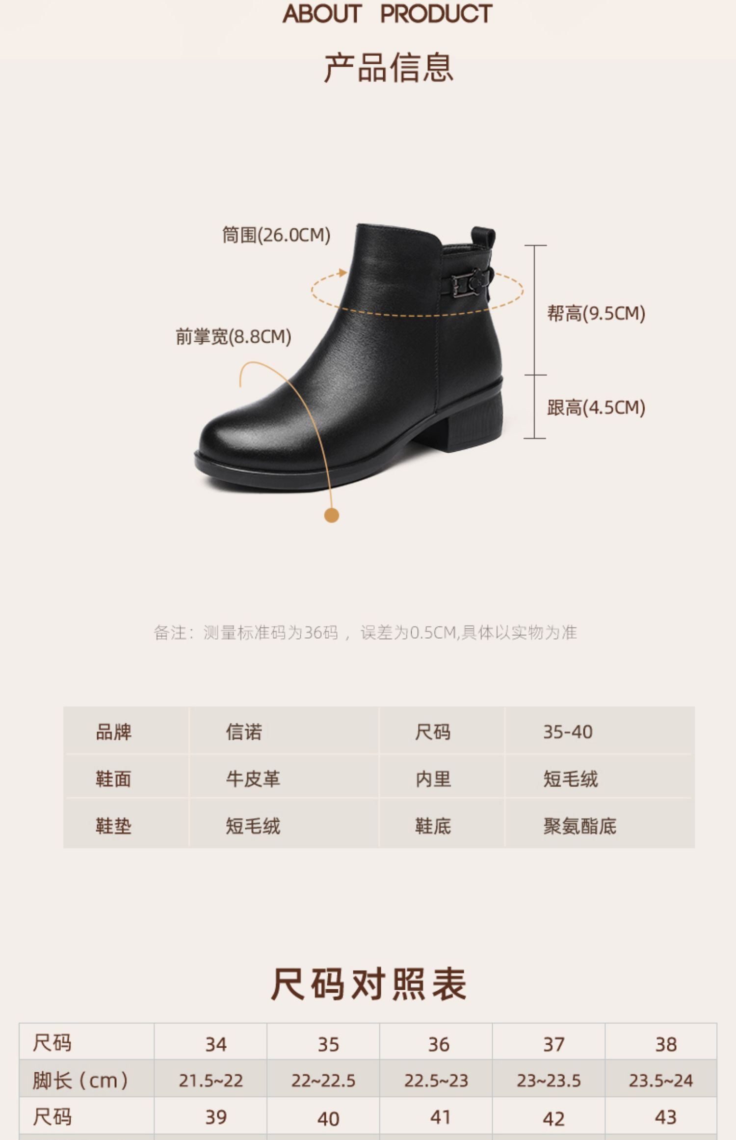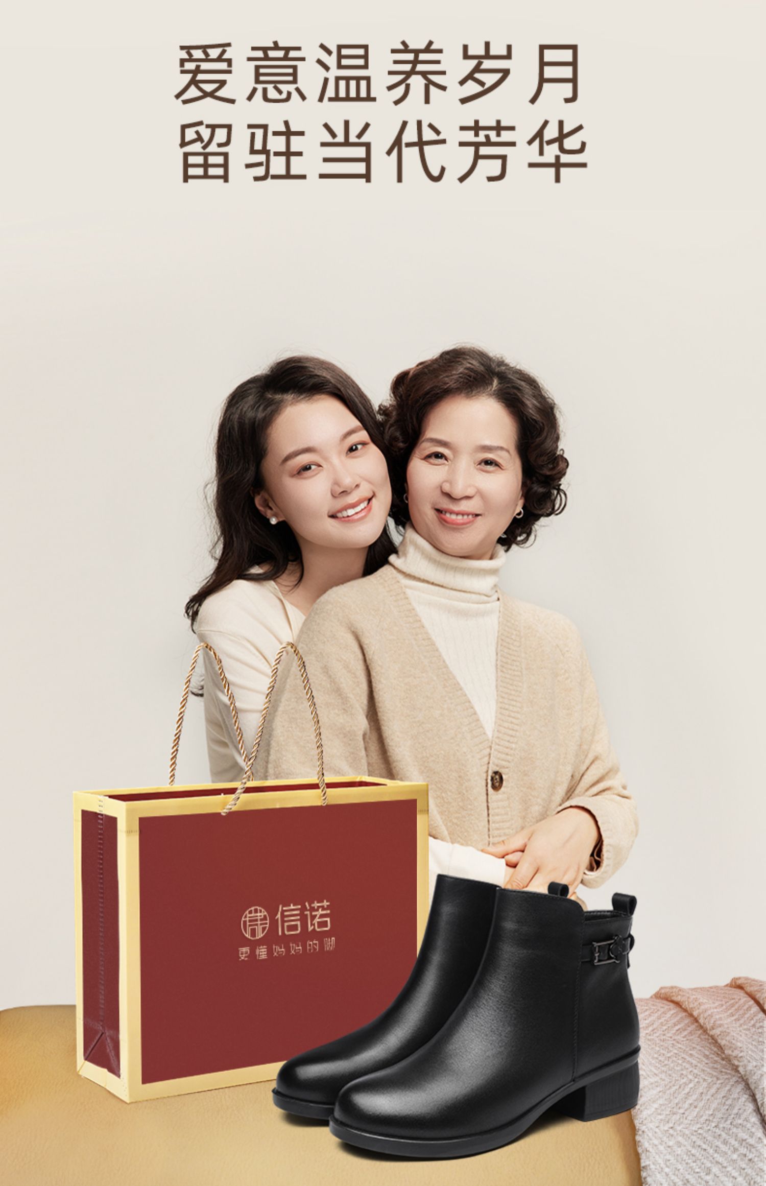信诺女鞋真皮舒适时装靴子2024新款冬季短靴中老年加绒棉鞋妈妈鞋M615-9D