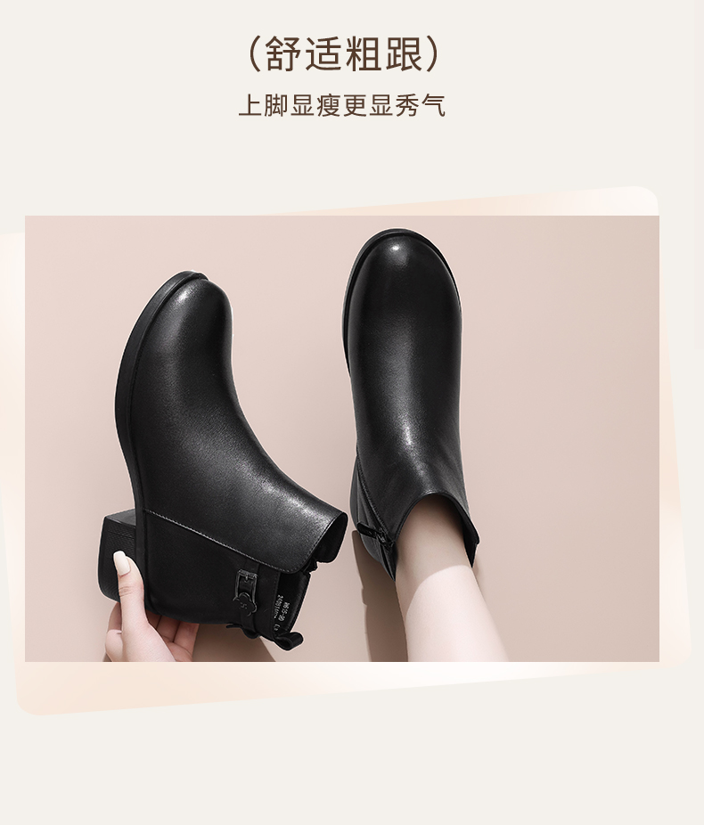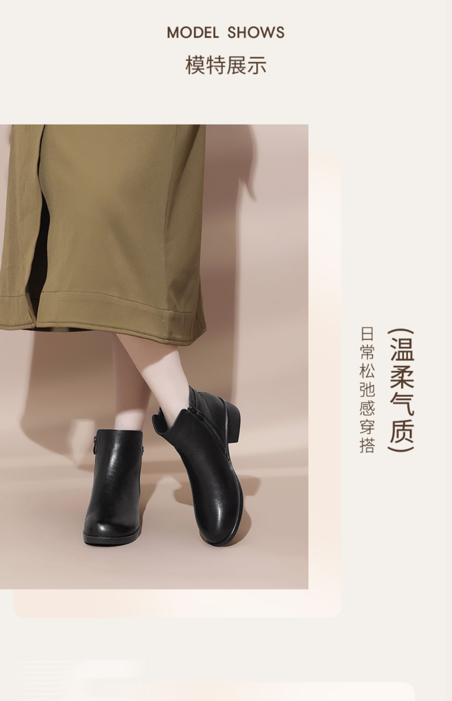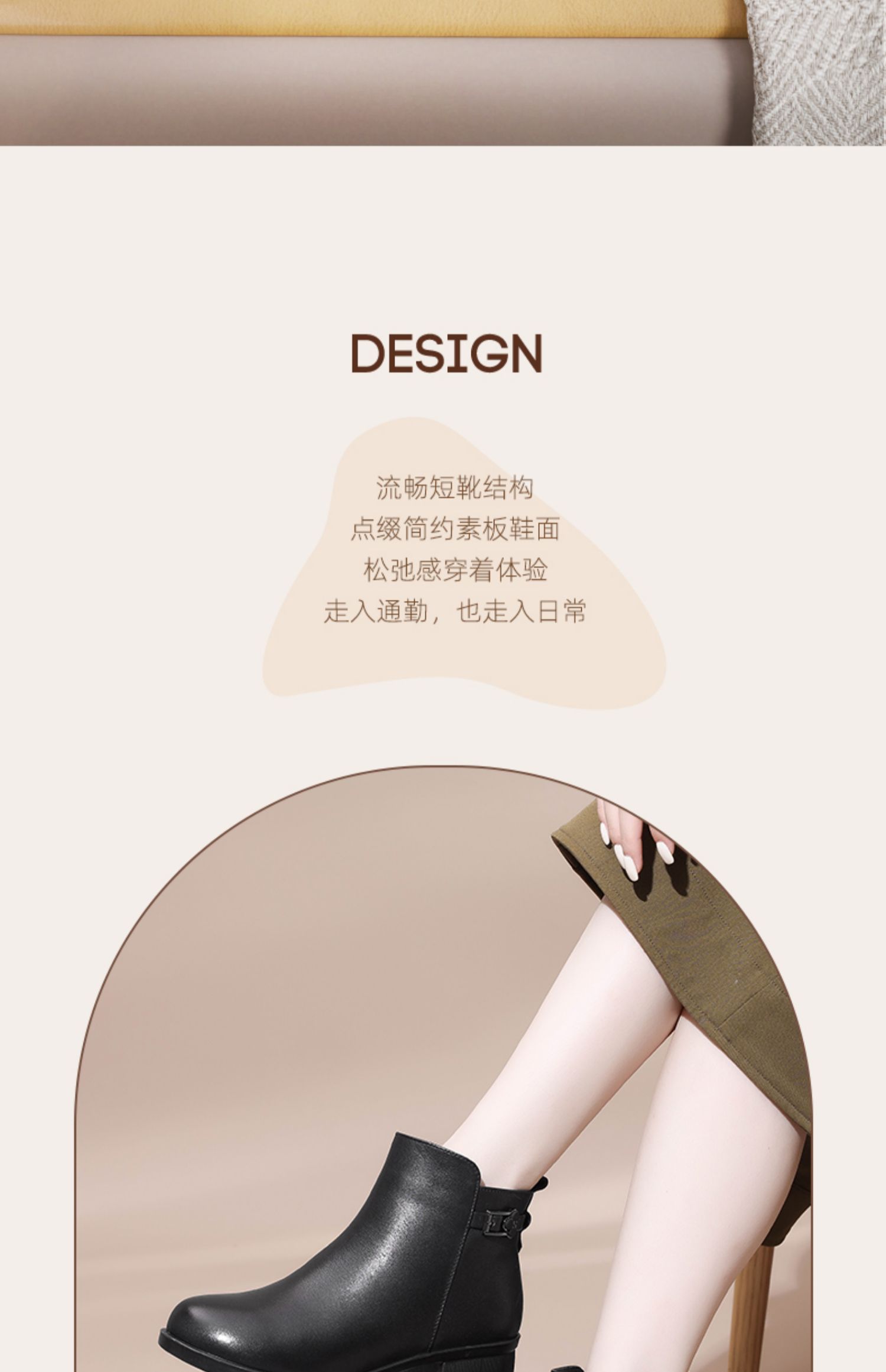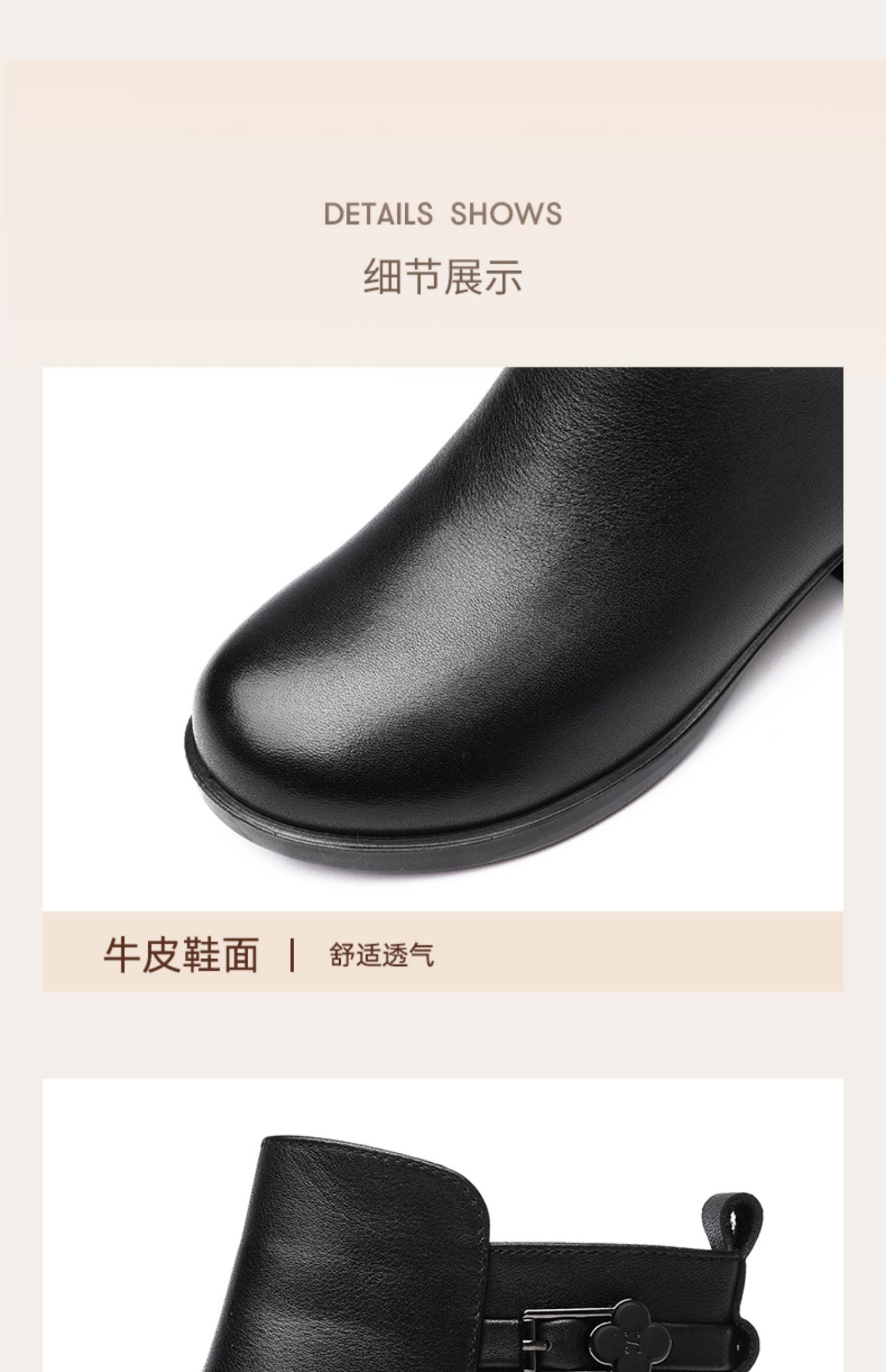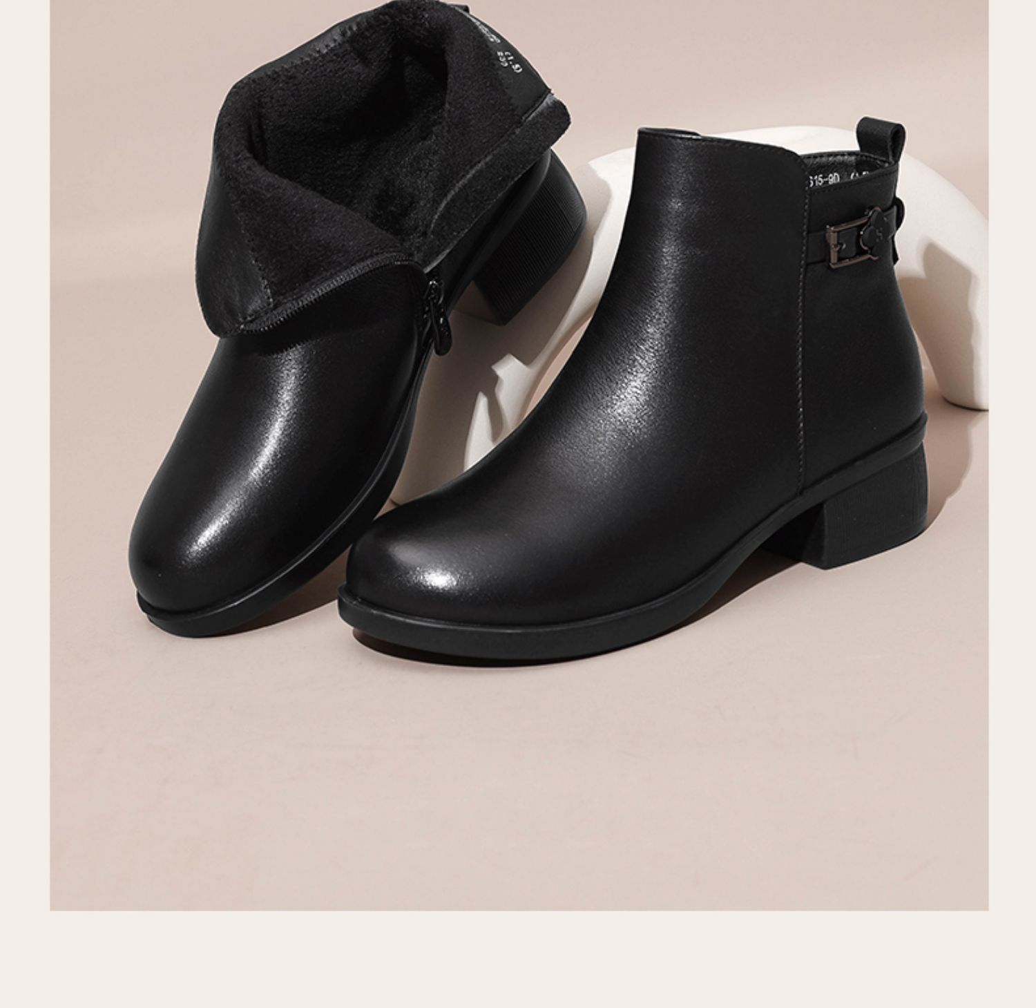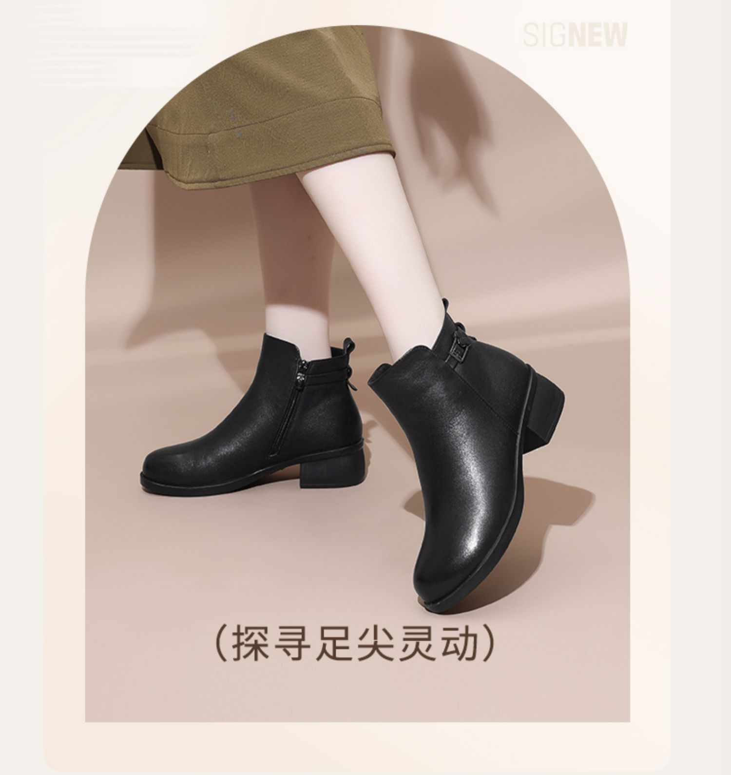 信诺女鞋真皮舒适时装靴子2024新款冬季短靴中老年加绒棉鞋妈妈鞋M615-9D