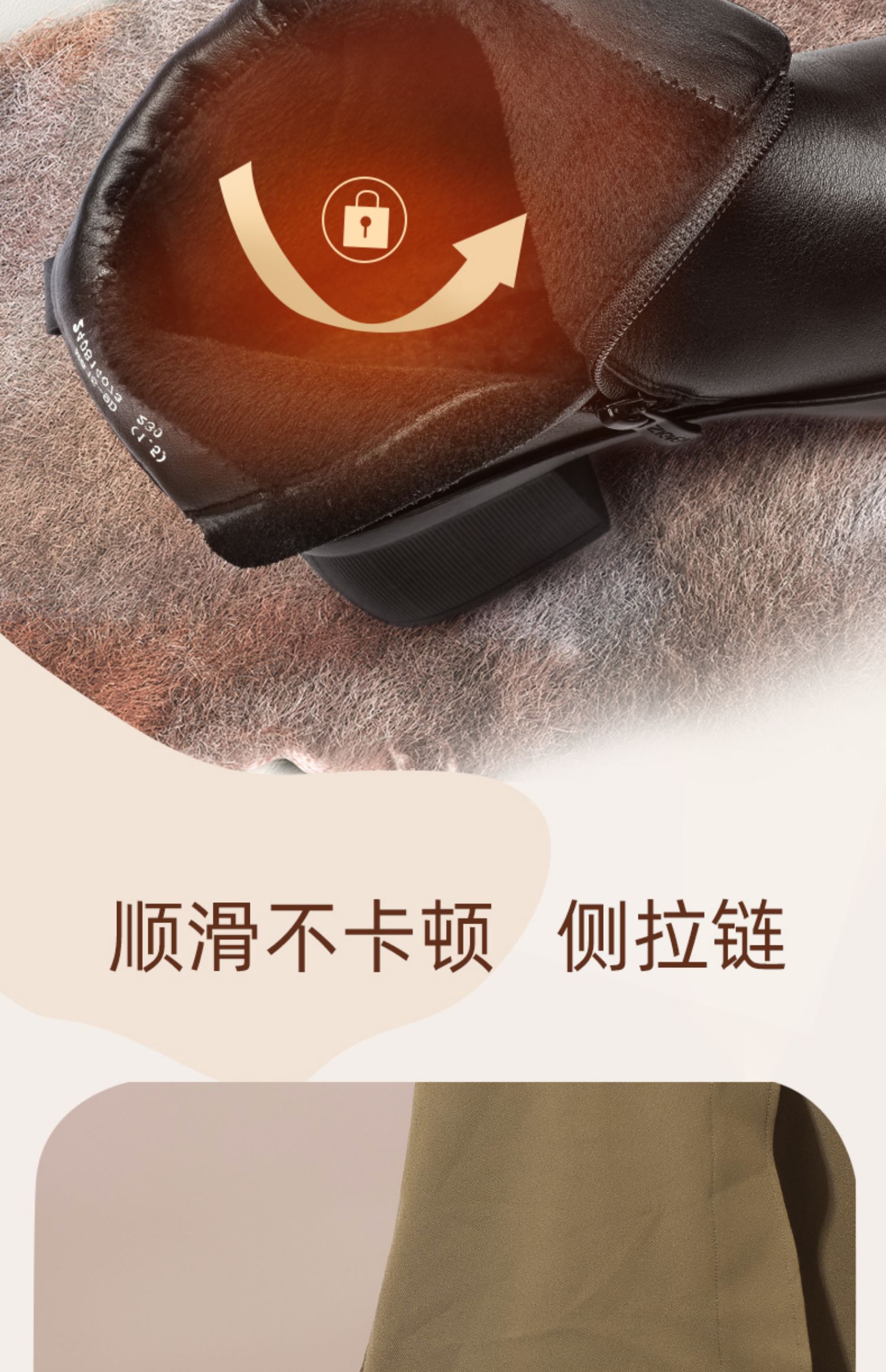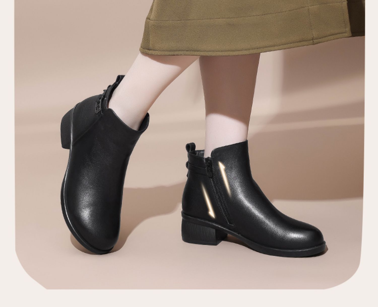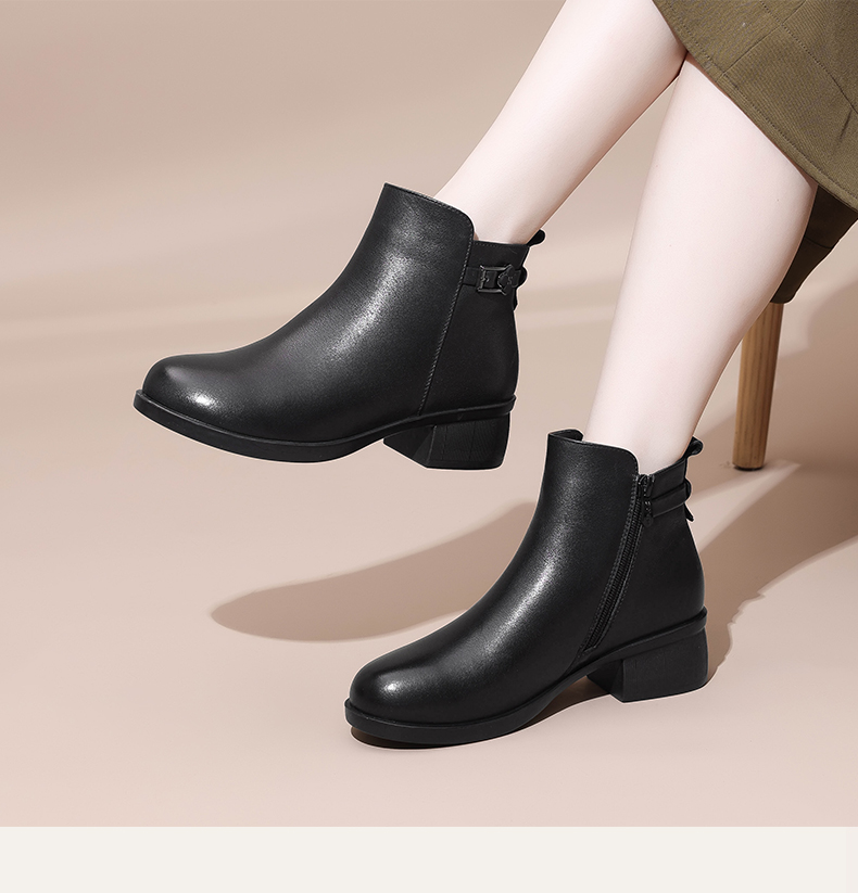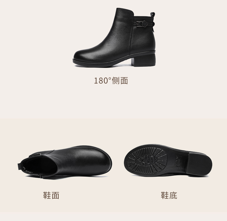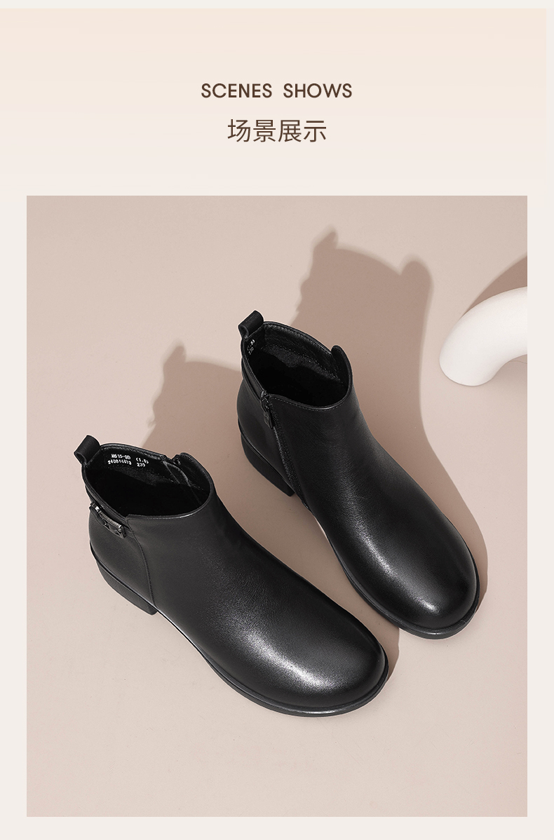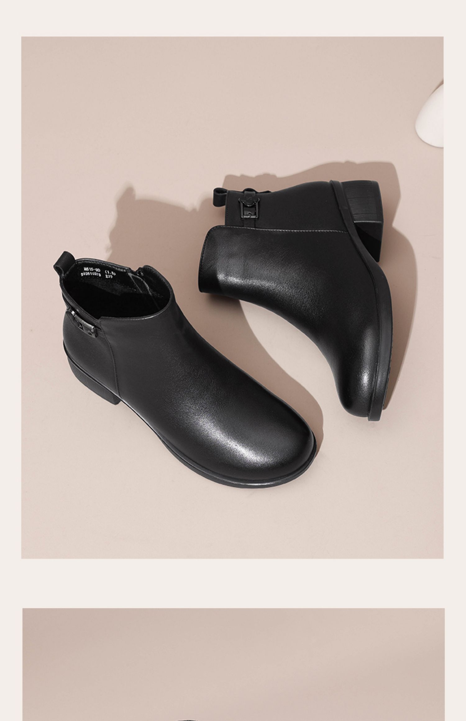 信诺女鞋真皮舒适时装靴子2024新款冬季短靴中老年加绒棉鞋妈妈鞋M615-9D