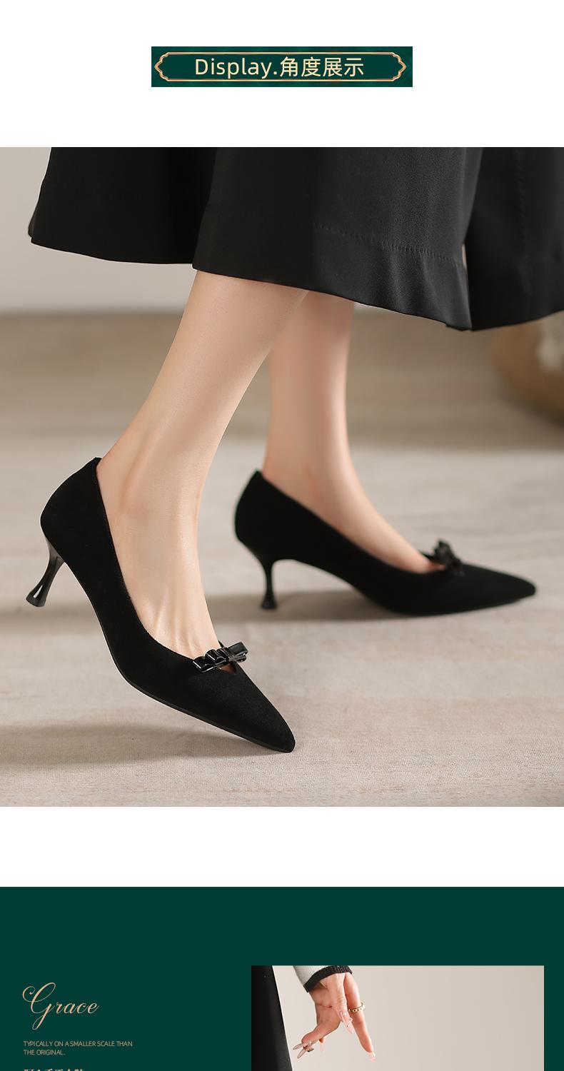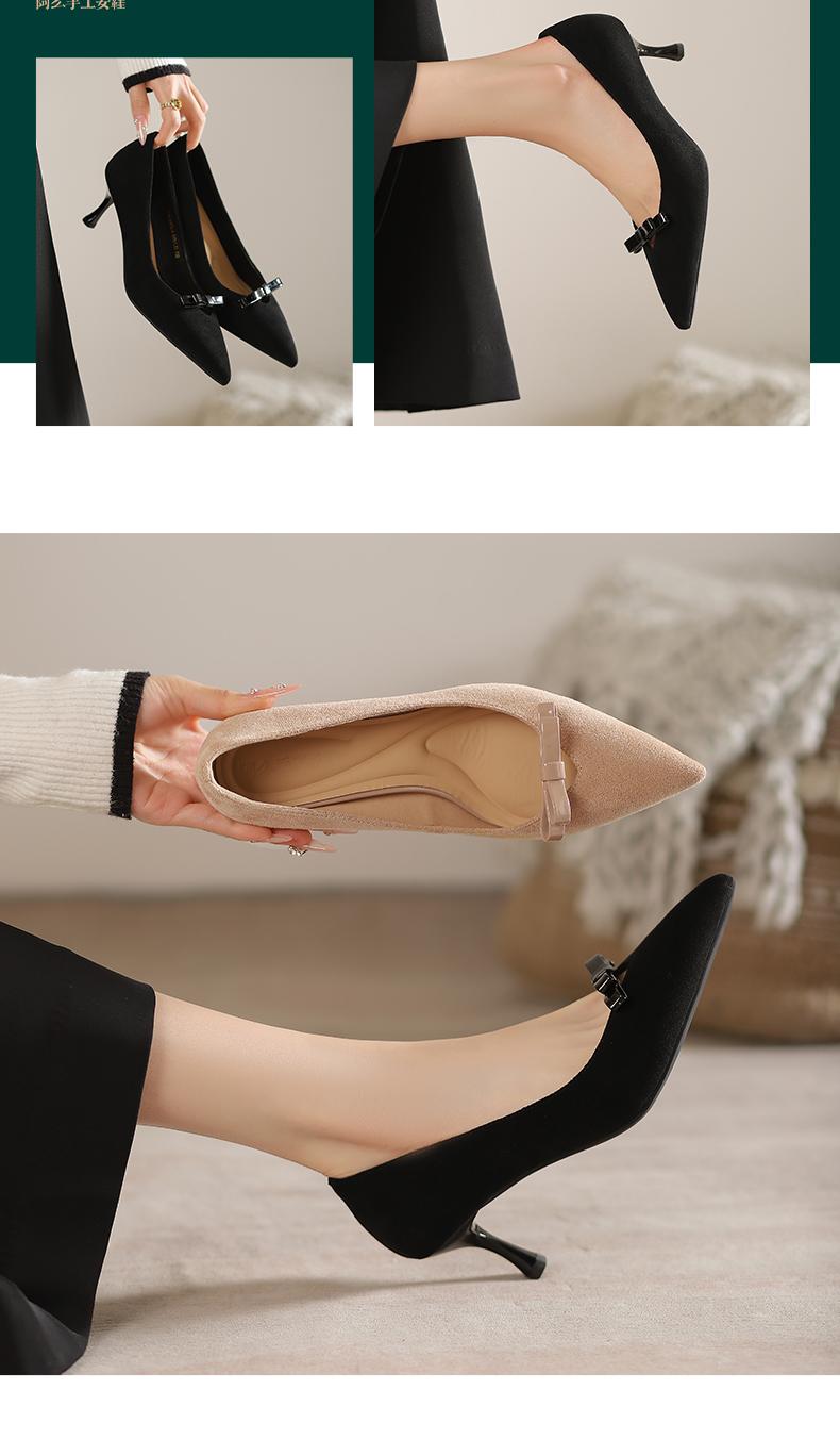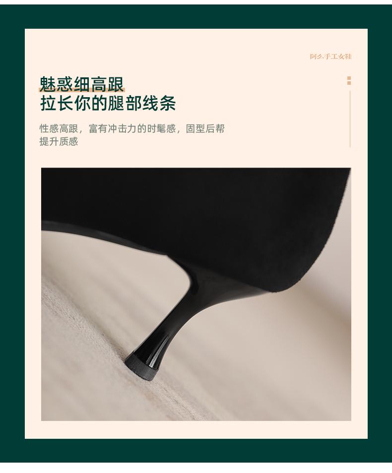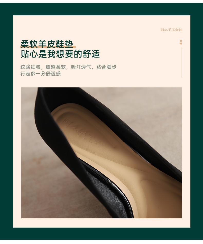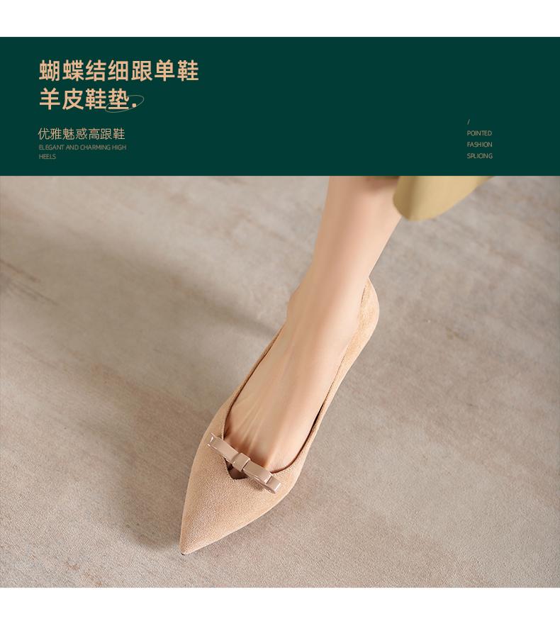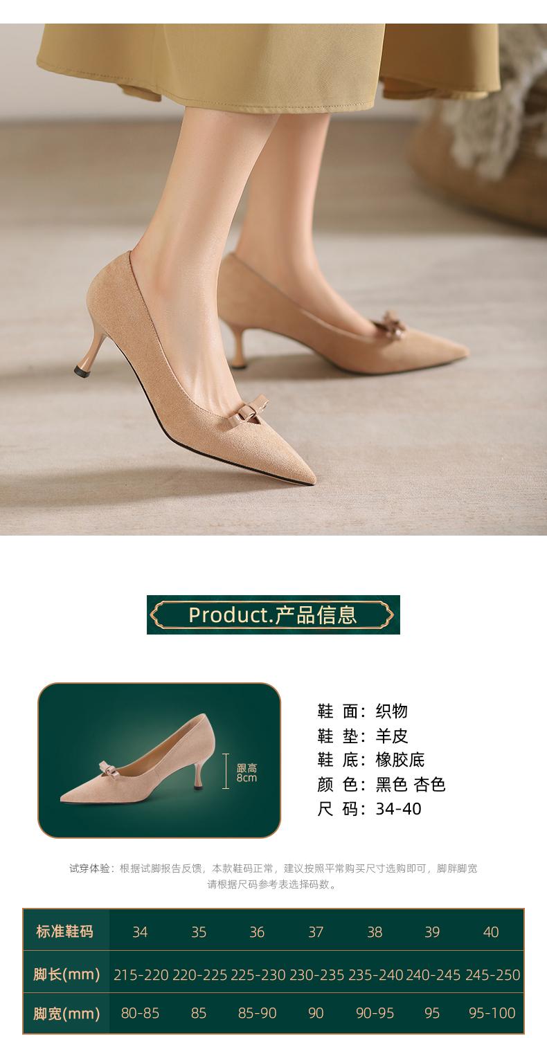 阿么手工女鞋浅口优雅蝴蝶结百搭单鞋细跟气质8CM时尚高跟鞋软底